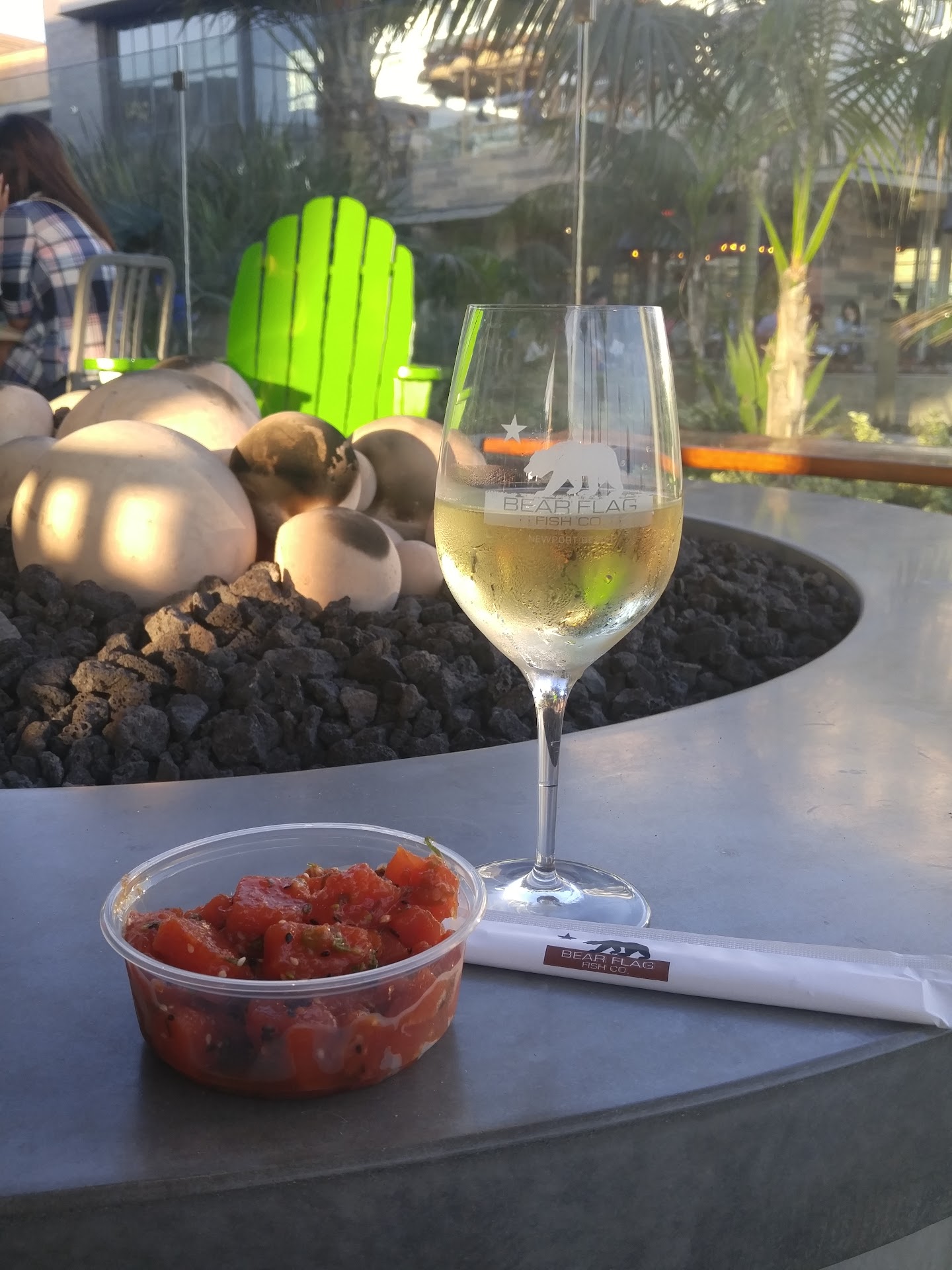 I live close by and get my food to go, so this part I can see getting some customers upset. It seems to be first come, first serve, for the eating area; I can be wrong, but it seems to be one of those places. However, if you're lucky and sit at the bar, it's full service restaurant style. The views are of the blue Pacific and all the tourist that...