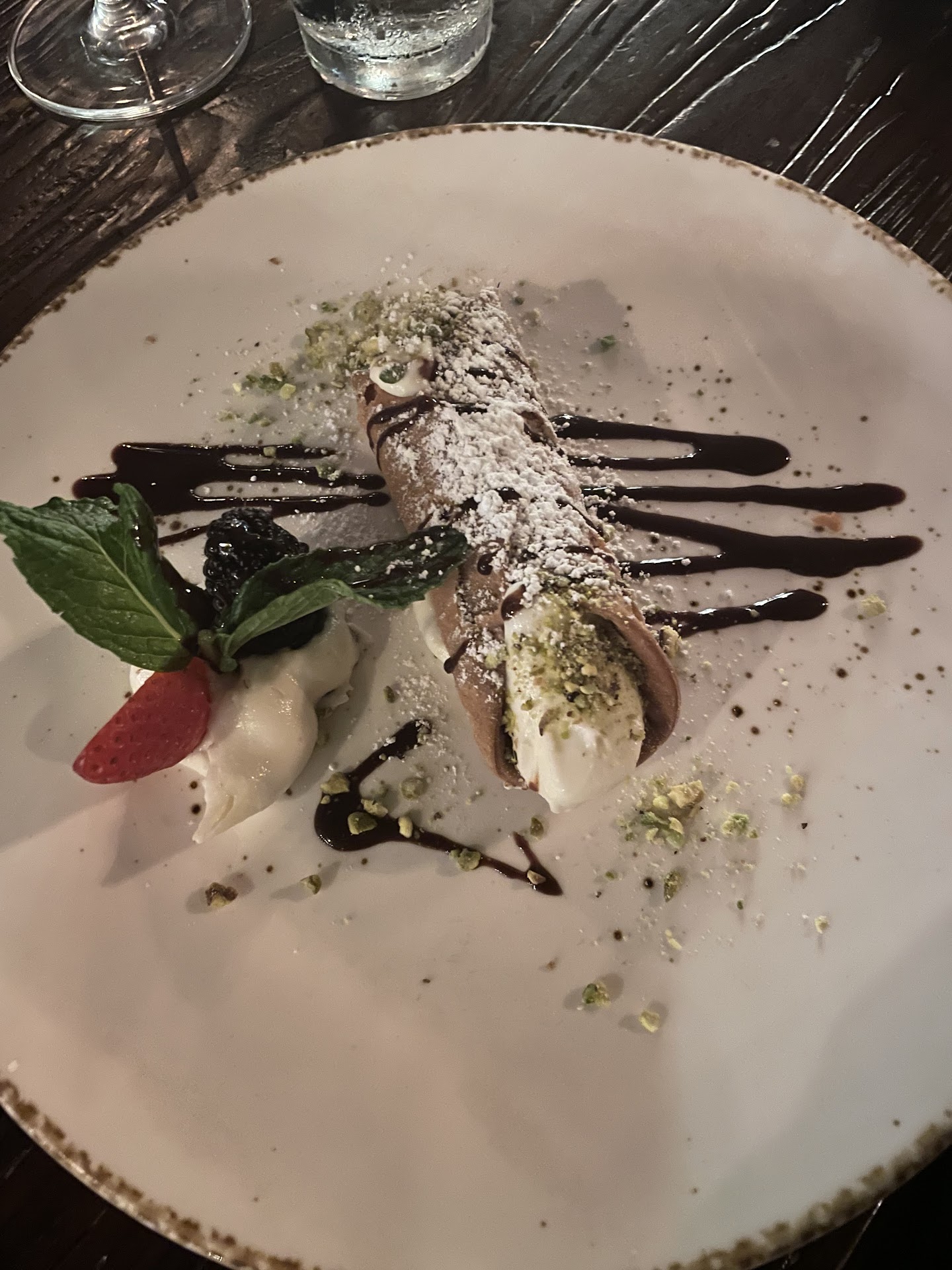 Googled an Italian restaurant and this was the first and closest to home that popped up on my screen. Decided to give it a try. The inside of the restaurant was elegant and loved the fact it was dark, it got my wife and i In the mood for wine. I ordered some Cabernet Sauvignon, Paso Robles, I believe, not many options but Cabernet is my favorite. My wife in the other hand had a glass of moscato. We werenât really going to order appetizers but the server insisted in the calamari. Itâs just fried food right?, plain and simple. The calamari was cooked firm and crispy yet soft and tender in the inside and Nice portioned size plus two tiger shrimps served with spicy marinara, very Delicious. Second glass of wine ready for our dinner. My wife ordered the simplest menu item which was just cheese ravioli, her favorite are lobster ravioli but this wasnât an option in this menu. Good portions, real good chunky marinara and flavorful. I in the other hand order veal Marsala. The veal medallions were super tender and absolutely fell in love with their Marsala sauce, a bit heavy on the wine over powering the cream and fresh herbs but still a perfect dish. We will definitely dine again do to the quality, authenticity, ambient, and staff.