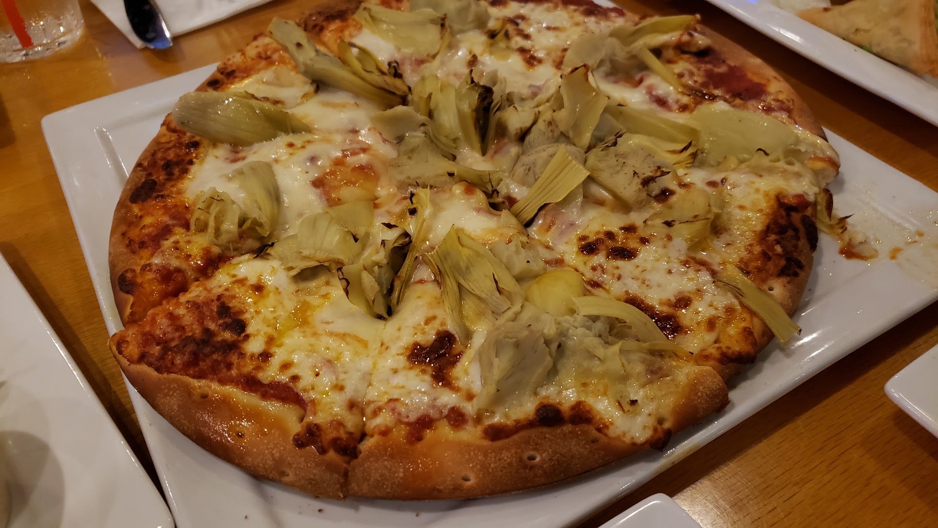 One of the rare moments I've given a 1 star. First off let's get the food out of the way. The appetizers were not up to par. We had the mixed appetizer plate. Minus the pita bread that was on the menu. A very small serving of Humas was grainy and salty. tabouleh was bland. It would've been decent if it came with the pita bread, but alas there was no server around to ask if everything was alright. Grape leaves we good and small. Not worth the $19.95 price. Would've been nice to have more water to wash down the salty appetizer, but again no server around. We had the soggy pizza that was way too undercooked. The seafood pasta was pretty good. A good helping of fish and pasta with 1 small broccoli and 2 shrimp. Well seasoned. My friends had the cheese ravioli and Lamb Shish kabob. Which was served 15 minutes before my meal. So I encouraged them to eat without me. I was told the ravioli was cold inside, but tasted decent enough. We really couldn't ask our server for anything, not even an extra napkin since they were inside the restaurant and we were outside.