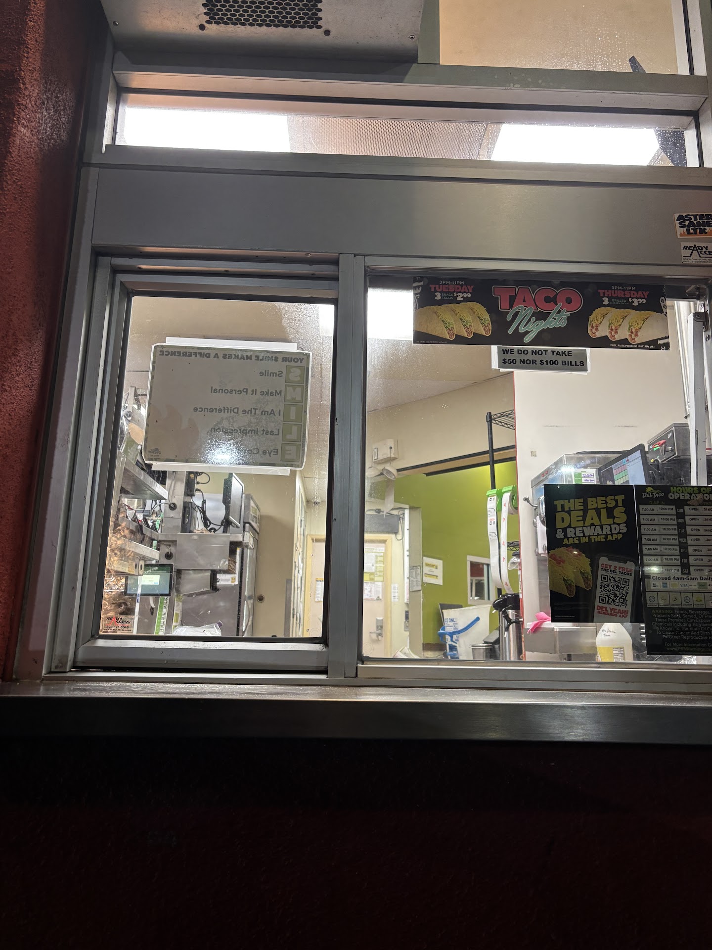 I wouldn't normally complain about a bean and cheese burrito but when you have extra cheese sour cream and you pay for things that are extra and now you're 99 cent half pound bean and cheese burrito that really is only like 8 oz is not in the bag when you get home, park, walk up your stairs,take off your shoes, pjs on, sit, TV on...deep sigh...and the only thing you pretty much eaten all day isn't in the bag? I just think that when people are tossed a bag to hurry up and get the next person served. Realize when it happens to you you don't like it so slow down and take your damn time because there was a person in front of me as well and I wasn't honking my horn & acting up. My 99 cent bean burrito ended up coming out to $3. 70 ? Cents. It really isn't much money but that's not the point.. the point is some people barely get by right now, some people aren't working right now, some people have three kids and they're single. so yeah $3.70 burrito could have fed three kids one burrito with just beans cheese and a tortilla and sauce think about that next time you short someone... you never know who's in need. So do me a favor today randomly give three people a bean and cheese burrito in lieu of me coming back to get mine or my money. somebody who looks like they might need it somebody might see out front sitting on the bench waiting for a bus go hand them a burrito. And after you do respond to this so I know that you really did because if you don't then I'm going to come and get my money I'm going to buy three burritos and I'm going to tell them and do it right in front of your store. Be kind and don't throw your food that you have leftover in the back dumpster I'll come pick it up and hand it out to some people not myself I will have friends even help me handed out to some hungry people on...