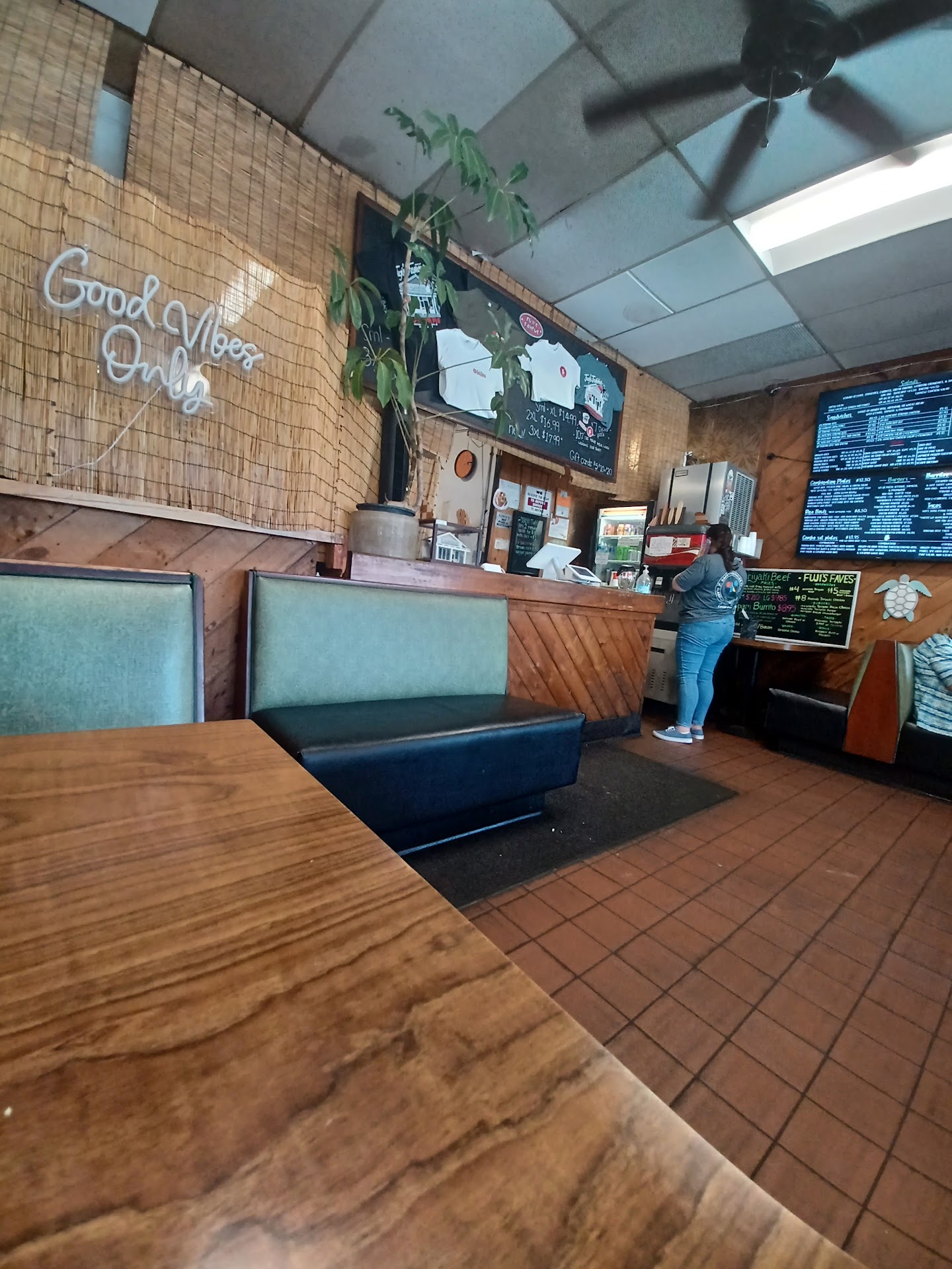 Read moreFuji's Famous Burger is a local fan favorite..hands down when it comes to teriyaki burgers!đ I've been coming here for over 20 years. The favorite is their teriyaki sauce they put on burgers, fries & rice. I have tried just about everything on the menu. I really like their chicken teriyaki tacos and the chicken spinach, avocado saladđ my daughter likes the teriyaki bowls and my son likes the burritos. There is something for everyone here. Once you eat here you'll see why the locals come here. Fuji's has a layed back no frills atmosphere and we love it. Ask any local and they'll tell you...they love it here. They also make a delicious tea (cold) hibiscus & ginger ...get it. So good. It's like being transported...