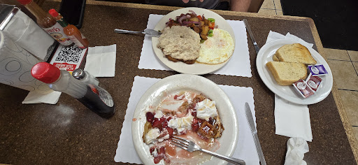 Read moreAs long as you come in here knowing exactly what to expect, you won't be disappointed. It's a local greasy spoon that specializes in no-frills. I guess it's a chain, and this one looks like it could be one of the first, lol. All 70s wood panel veneer and dated decorations, but it's cheap and relatively clean. You order at the counter and they bring the food out to you. I got their chili cheese omelet (hey, don't judge me!) with hash browns and wheat toast. The chili was surprisingly a little spicy and quite good, if you're into the kind of chili that has little teeny minced beef granules, a la Tommy's and the like. The coffee was also surprisingly good, and the waitresses who brought the food were very friendly and accommodating. All in all, a satisfying and...
