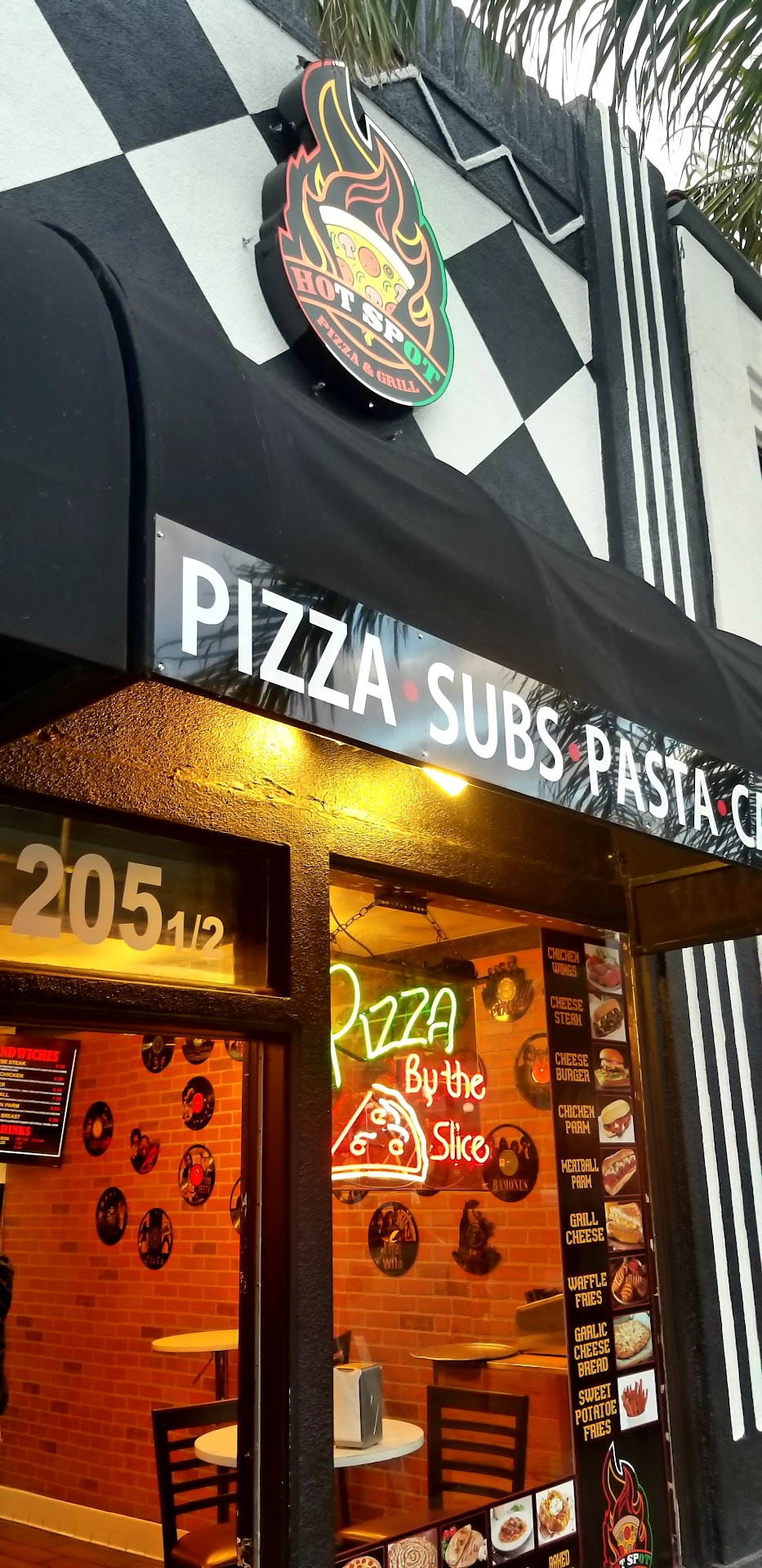 My wife and I were on our way to another place to eat when we spotted the Hot Spot across the street. She ordered their Cheese Steak Sandwich and I ordered the 10' Sausage Calzone. The Sandwich came up first and it was pretty good, but that calzone! It was simple and amazing! I think it had a mix cheese (2-4 blend) and ricotta mixed in with sausage. The staff was friendly and nice, and I loved it! I now have a favorite place to come to when I visit Huntington Beach main street. Definitely come support this place