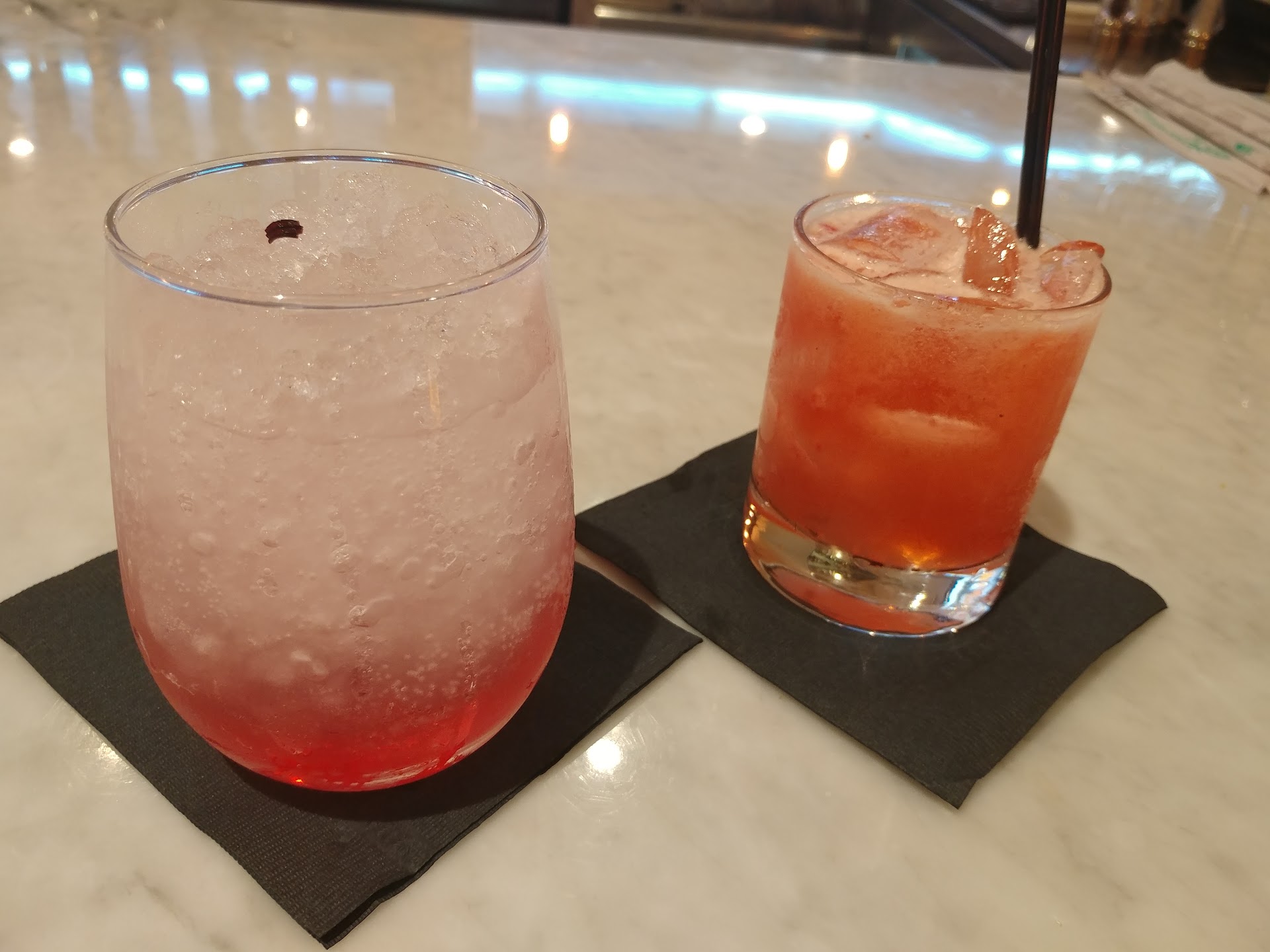 The Alaskan King Crab came with potatoes and broccolini. The Filet Mignon came with potatoes and asparagus. The Lemon Giant Prawns came with zucchini, squash, and carrots. It also had a rice pilaf on the side. The broccolini on all the dishes were acceptable but a little too firm, and were not seasoned the best. The zucchini, squash, and carrots were yummy and tender. They had an enriched lemon flavor that burst with juices that made you want more. The rice pilaf was a little bland in comparison to the veggies, as well as dry. The potatoes were just awful. They were dry with crusted bits on the top that I think was an attempt at cheese crust? Lumpy is another word that came to mind when I ate them. I believe boxed mashed potatoes may have been more appetizing than these. The entrées were excellent. All of them. The Filet Mignon was asked to be medium rare, more on the rare side, and was delivered with finesse. Excellent crust and flavor from the steak. The tenderness was visible from just touching it. The prawns were good, not excellent but good. I believe they needed a bit more flavoring but had a solid flavor in the end product. The dipping sauce for the prawns was a saving grace for the dish. A nice and creamy dip made the prawns burst with flavor. I do think a sauce that was a bit more zesty or zingy may have been more desirable. The King Crab was also excellent. Well cooked and great flavor. Using the crab cracker is always fun, but this time using it knowing how good the crab was after eating one bite had my date and I fighting over the cracker (hindsight we could have asked for another, but where's the fun in that?) The fun ended when we got to the garlic butter sauce with the crab dish. It felt like it was an imitation of garlic butter. I would compare it to a fancier version of Papa John's butter sauce dip for their pizzas. This sauce was thick and viscous, and lacked a garlic flavoring that was sorely missed. It was so missed that we ended up leaving the restaurant to go home and make ours that we love to eat with seafood. Overall I give the whole dining experience a 3 / 5. The entrées were a great tasting dinner, but the drinks were not something I would want to drink again, and the sides need a serious upgrade in their...