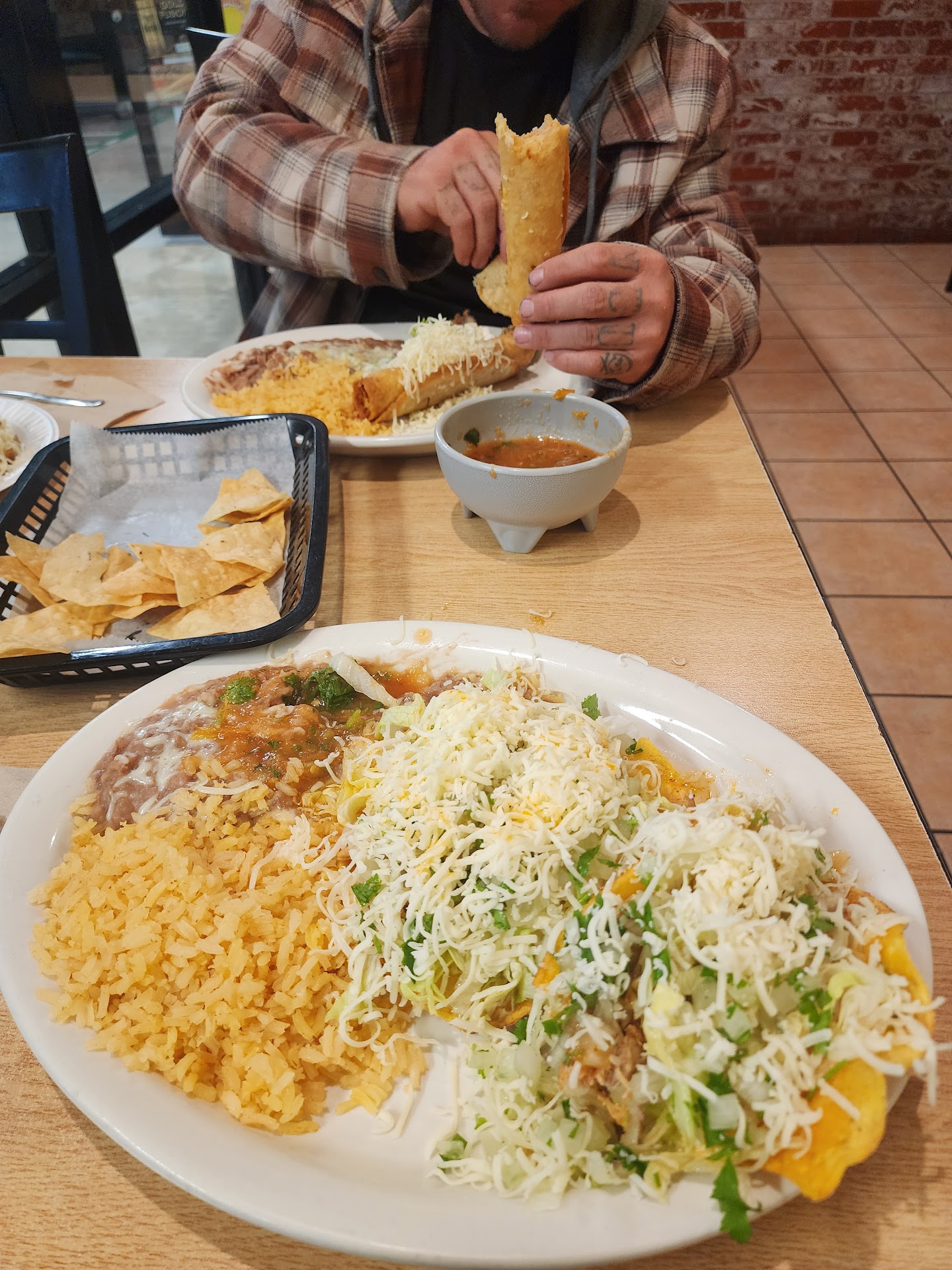 I've been looking for a restaurant that serves great flautas similar to ones I had as a kid, and their flautas are absolutely delicious. The meat was so tender, and their guacamole and salsa was also incredibly flavorful. Rice was fluffy, and soft, great texture. And beans were also fantastic. We also ordered a chimichanga, which was giant, nice and crispy.