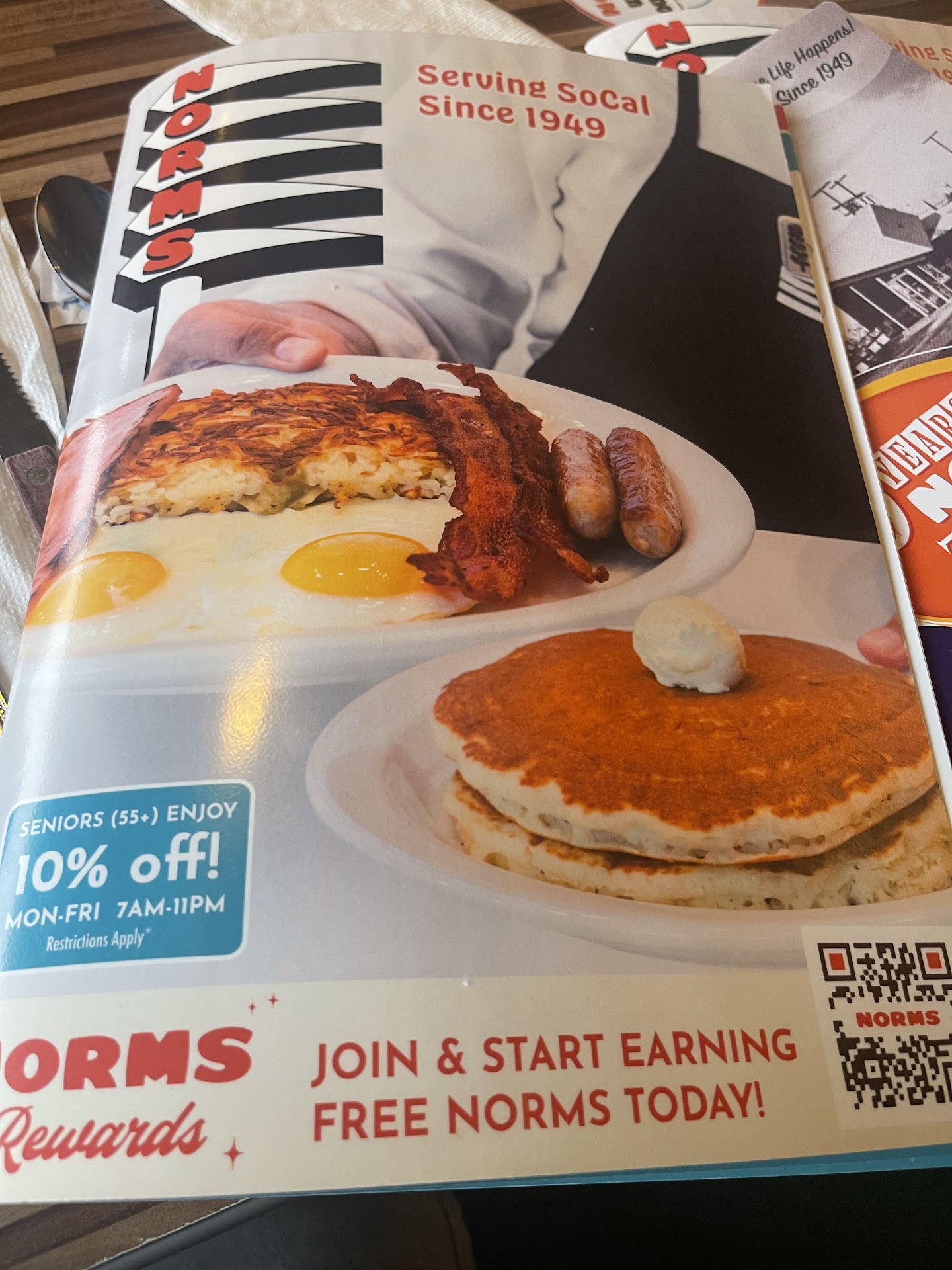 We are Huge Norms Patrons we Always go for the Bigger Better Breakfast Specials where we live in Long Beach Area or the Fish n Chips Special in Norwalk- But We won't be returning to the Norms in Huntington Beach...