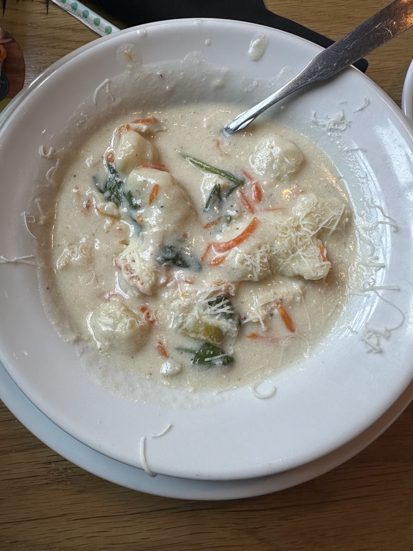 Read moreMy partner & I both ordered different types of pasta & both were overcooked & a little bit soggy. When I eat at any Italian restaurant I expect pasta to be cooked at least a little al dente. Server came over after a while & asked if we wanted any to go boxes because our pasta was hardly touched. We said no because the pasta was overcooked & not worth taking home. Server left the check & then walked away. Some time later the server finally came back & asked how we wanted to pay. I said I wasn't paying until I talked to someone about our meals. Manager came over & after explaining the poorly cooked food he said he wished I would have said something earlier or notified the server & he could have another one prepared. I said we did tell the server. We already had two overcooked pasta dishes & didn't really need any more. He gave us a partial discount & we paid & left. After arriving back home I realized the manager charged us both $8.99 for a salad. The menu priced the two pastas at $14.99 but the manager removed only $13.99 for the two pastas and then charged $17.98 for two salads. So from a $14.99 pasta we were discounted $5.00 for inedible poorly cooked pasta which was 1/3 the cost of the meal. Is the salad cost really 2/3 of the pasta meal? I feel like the service, the kitchen, and the manager all failed us. I've had three different issues over the past few years at Olive Garden so maybe something is slipping with quality control. Never had an issue at Old Spaghetti Factory so I'll probably just go there if I want pasta...