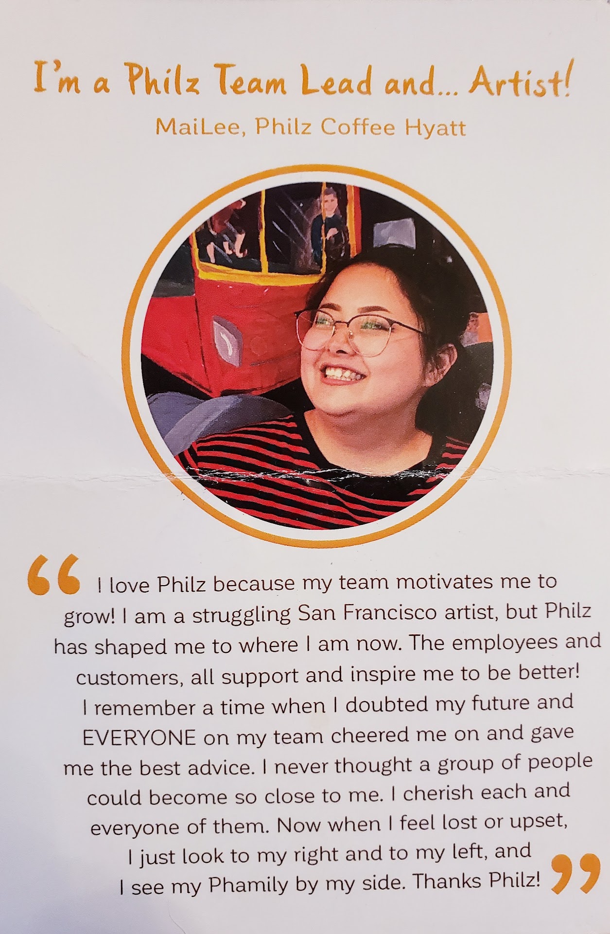 Since I'm a big fan of coffee, I tried a dark roast. All the different strengths coffee are a blend. Only Mr. Philz knows the amount of blend, no workers know the origin or the beans. Jacob's Wonderbar, full bodied dark roast with a hearty smell and a nice balance of acidity. Highly recommend as one of the baristas girl recommend this for me. Now, it will be the coffee I will be getting the next time I'm here.
