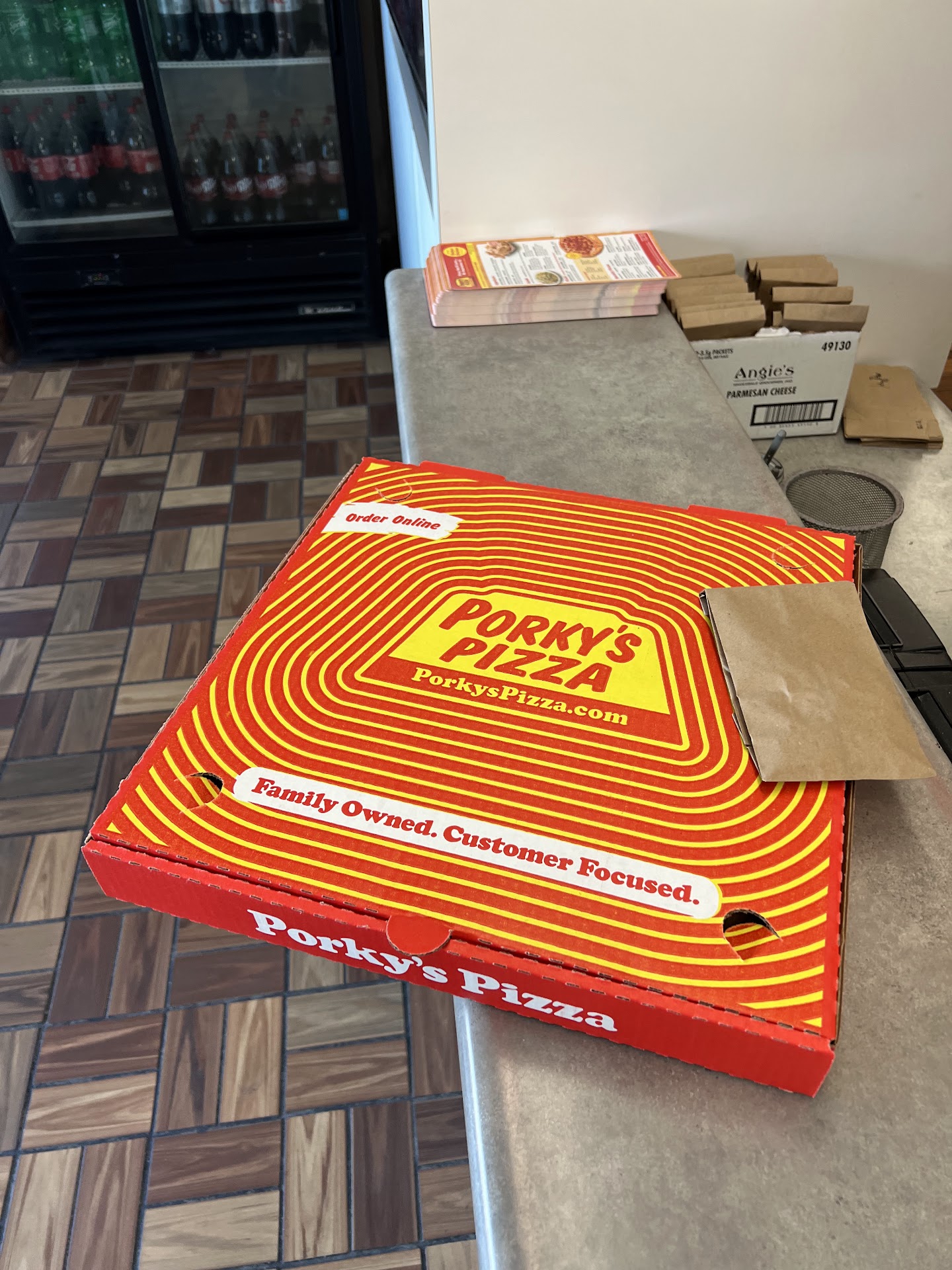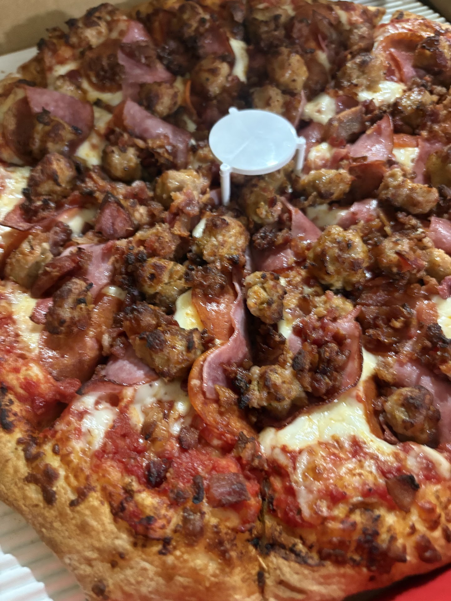 But the excitement was soon to show up in the form of their large special pepperoni sausage pizza.