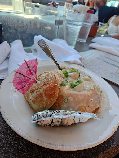 We got our drinks and it took about 10 minutes before we saw our waitress to take our orders, she did look busy. Then we placed out order: Sword fish tacos, fish n chips, and a *Cup of clam chowder. You may ask why the asterisk, well I was served the bowl in the sourdough bread which normally I dont order sour dough just because I’ve never liked it. The kitchen staff told me they would mention it and have them charge me for the cup which was a difference of $7. I ate it and OMG, It is incredible, including the bread, yes I said it the sourdough bread is amazing at this restaurant. We are for about 25-30 minutes and I’m not kidding you our waitress never showed to check on us perhaps because I didn’t make eye contact to ask for anything but we just were not checked on which was a first in my dining experience. Not to mention we observed her drinking at the bar.. not sure how that works but that’s not for me to comment further on. When she noticed we were done she made her way back to ask us for dessert and we declined asking for our ticket to find that we were charged in full for the clam chowder. I told her that I ordered the cup with her and she said she would tell the manager Scott whom came to our table to tell us “she placed the order in front of you” which was on a handheld device so I didn’t know I was suppose to verify my own order, maybe a simple read back would be smart. After I told him what I ordered and received I informed him I loved it! And I would gladly pay for it, I just didn’t specifically order that because than it would have been too much food! He then was very polite and went to change the price which took him 15 minutes to do due to POS issues he tried 3 computers, and finally waived the charge. I thanked him and we moved on. My point is the time was not worth it for the $7 but then we enjoyed the fire pit as we waited and honestly would come back every...