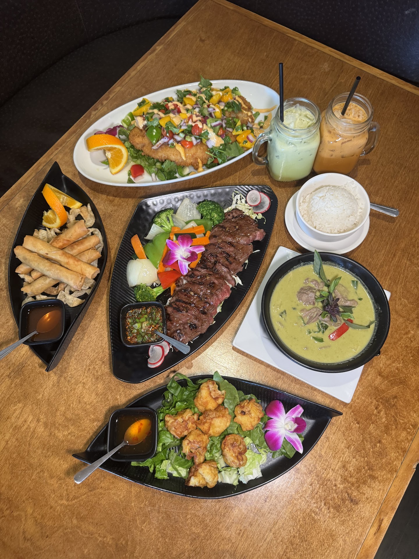 We’re still thinking about: 🌈 Rainbow Fish 🥩 Crying Tiger 🥣 Green Curry 🥟 Fried Wontons 🥚 Eggrolls 🥭 Mango Sticky Rice with Coconut Ice Cream 🍌 Fried Banana with Ice Cream 🧋 Green Milk Tea 🧋 Thai Tea