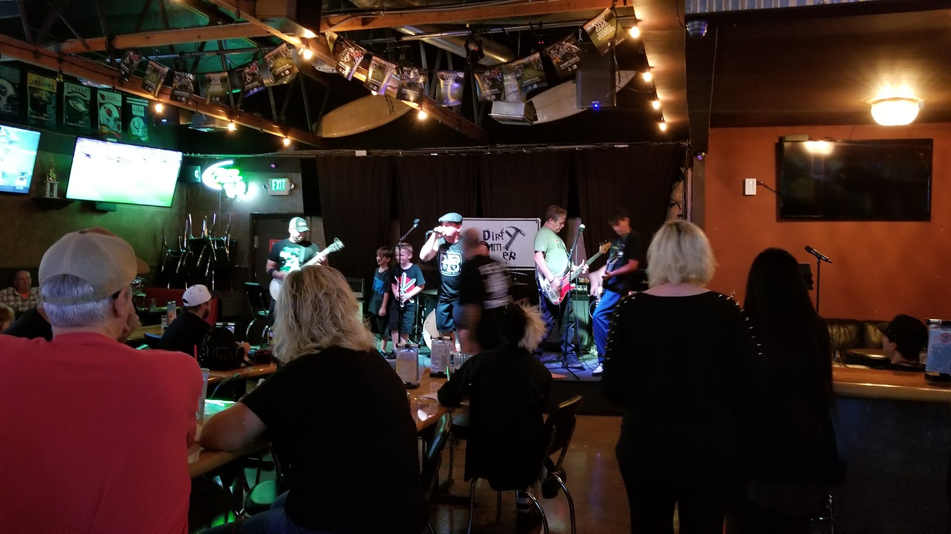Nice clean bar. I won't call it a dive bar because its also a restaurant....I think? At least I saw food being severed while I was there. They have a good selection of beers on tap and the bartender was very knowledgeable in drink mixology. She quickly made my girlfriends drink ( blue Hawaiian ) very strong but with lots of flavor. She loved it, and she is not one for the taste of alcohol of any kind. I had an 805 on tap. I did notice they have PBR on tap and something called blue hammer: crab smash (I think it was called that, not entirely sure of the name?). They also had several other beers on tap, that I can't recall. They have 2 pool tables, and some dart boards. And for the 2 times we have gone here, (both times on Saturday nights btw) they have local bands playing. The first time we went it was a.... punk band? They sounded punk and were dressed kinda the part. Then our most recent visit it was a 70's classic rock cover-ish band. They played some classics and then had a few songs of their own. They seemed to be having fun playing their music so it was entertaining. Surf dog's is off Springdale and Warner, in the same parking lot as 24 hour fitness. Give it a go if you're in the area. I certainly enjoyed myself in its cozy beach themed setting.
