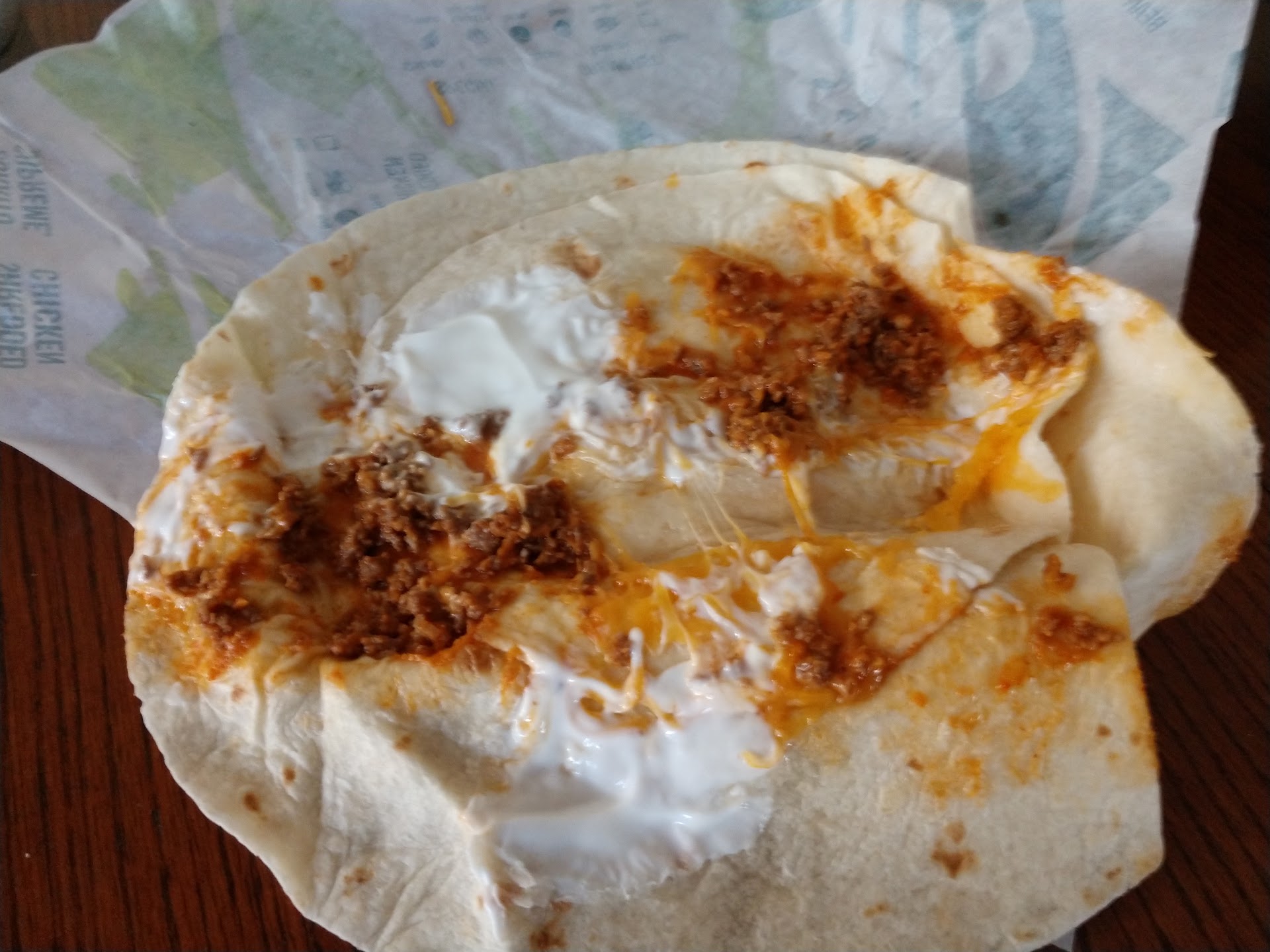 Read moreThe portions are skimpy. If you enjoy eating carbs with a smear of meat. Then taco bell is right for you. I took a bite(crunchwrap supreme) and immediately took it up to the counter and showed what appeared to be a spot of smeared beef.
