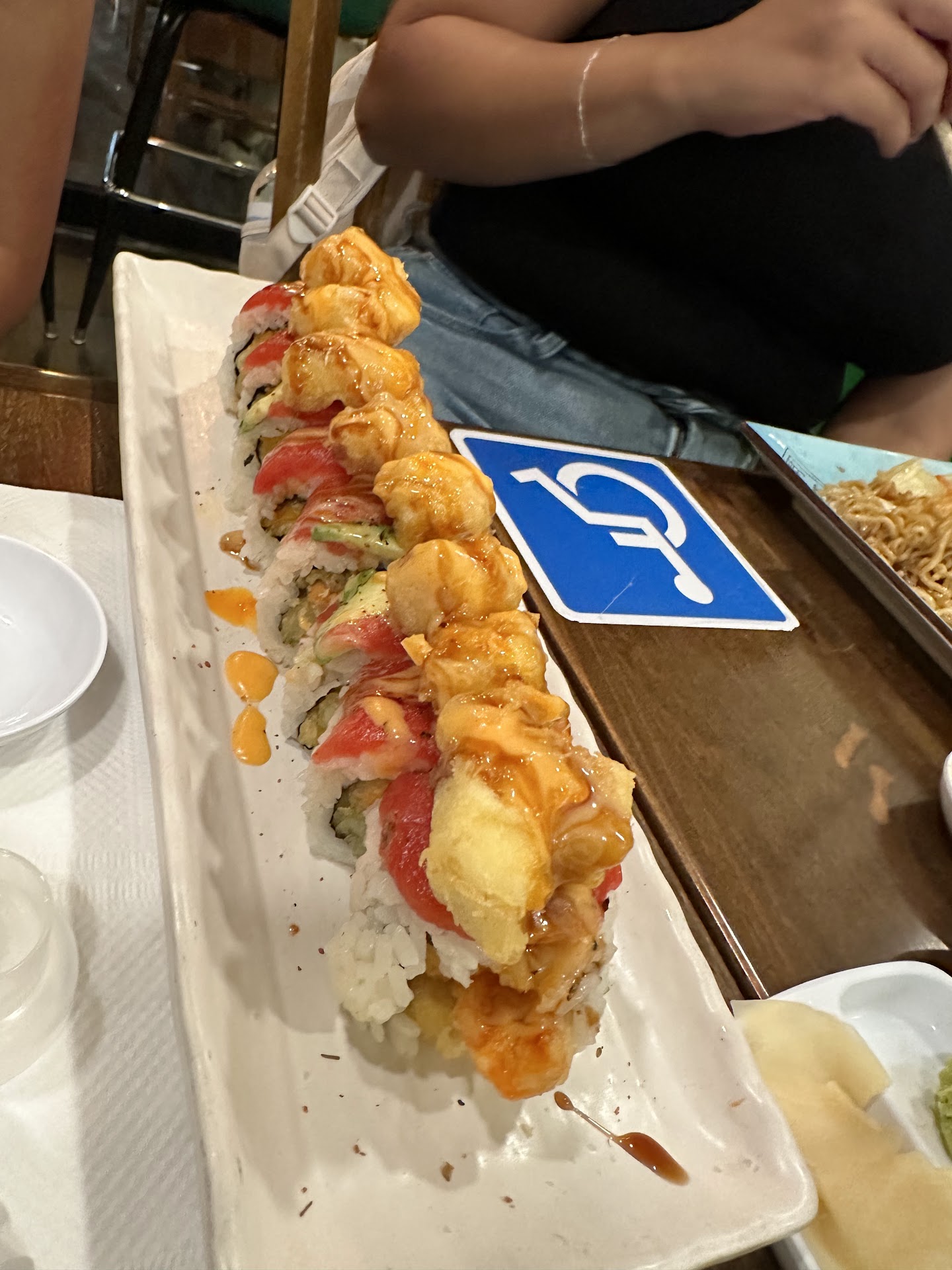 Read moreWe were sitting right away. However, we weren't impressed by the service. We came in hungry, hoping to have a good first experience here, but ended up being attended to and served after someone else who came in after us. As someone who has worked restaurants for almost a decade, i wasn't pleased. We were about to leave when suddenly we finally got our food. If it wasn't for the chef, we probably would've waited longer to get menus and left sooner. However, the rolls were drowned in sauce and mayo WAY too much. Barely can taste the fish and was not a well-rounded taste as well as inconsistency all the way through.. I see the direction they wanted to go but was not executed structurally or taste wise. Unfortunately, I was hoping to have some AMAZING rolls considering how long we had to wait to get them, but they were not amazing it was rather "MEH".. If it wasn't for the chef being WELCOMING and not being charged for the vegan roll, we would put 1 star. Ps- THE SUGGESTED TIP RATES ARENT MATHEMATICALLY ACCURATE, THEY ADD MORE ON AS IF WE...