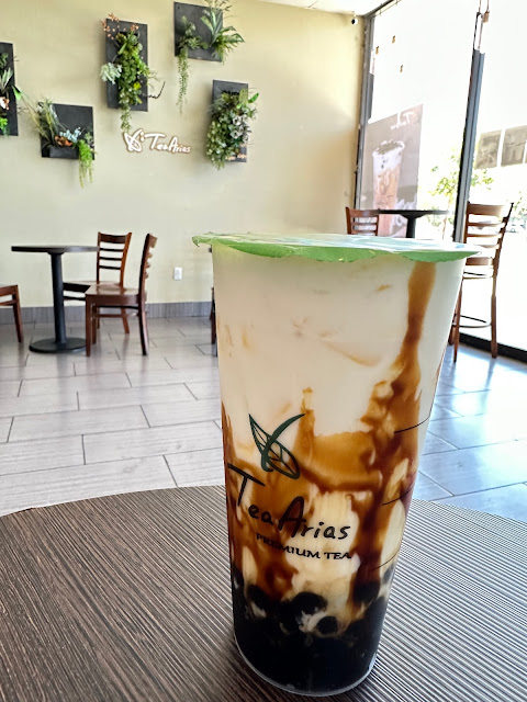 TeaArias is our regular spot for Saturdays, and we always go here because nowhere else is as good. Our every Saturday tea choice has been Thai Tea with Boba, for me, 25% sugar, which is an excellent option for choosing the amount of sugar. Some places near my work where I go to get Thai tea are restaurants, and they do not adjust the amount of sugar.