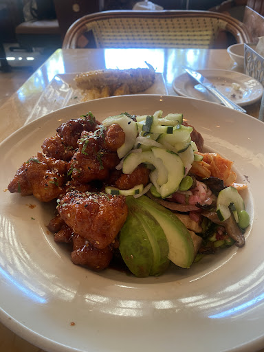 I took a star off because the atmosphere is basically a Denny's with high ceilings. Lots of tables and booths crammed together in the space with lots of background chatter noise. It's a big chain restaurant in a shopping mall with a family friendly vibe so that is to be expected. Overall, it's a nice, easy tasty place to go for lunch if you want somewhere a bit nicer than a local...