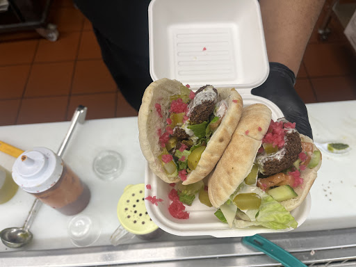 I forgot the name of the gentleman who made my falafel but he did an impeccable job. The falafels were freshly scooped and fried and all of the sauces were so completely delicious and magnificent. He whipped me up a juice from scratch and it was perfect. I I was really impressed that with the ingredients you use to make the juice the pour out of the blender was the exact amount of the cup he poured it into. I don't know if I've ever seen that in my life!! I love a good falafel and this is the best falafel I've had in... I don't even know when. I could tell that the gentleman making my food really cared about it. I wish I remembered his name but I'll be back many times. I'm so glad I stopped in to discover this place... here's to a long relationship Golden Falafel. I...