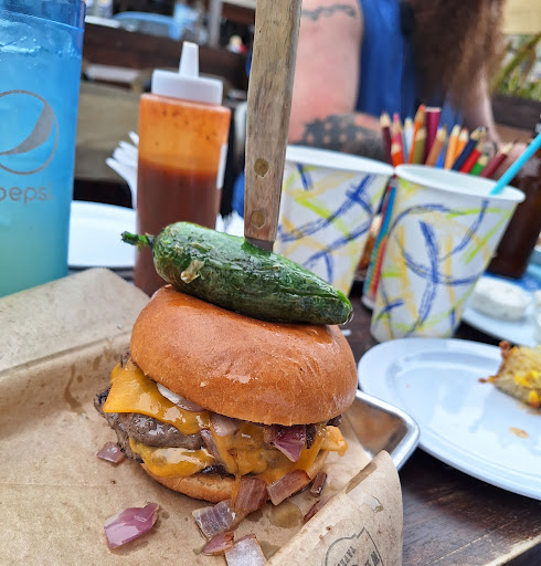 Read moreThe tater tots are totally titular! The ranch is thicc and creamy. The carnitas is juicy and moist. The fresh menu items like the poke bowl are a fashionably culinary delight and therefore fre$h AF. The southern style chicken fried sandwich is my favorite, and to make things even better they carry Red Beard's hot sauce here which goes great with it. The staff and service deserve honorable mention. Great pawsitive energy and I never felt ignored. Most dog friendly bar on Main st. If you like petting other people's dogs this is your spot. I even got invited to a dog's wedding. Petunia is getting married to Gunther guys! He's a good boy! There's lots of open air here and fun games to play like Jenga. The drinks are dank too. The electric avenue is lit, and even the bloody mary came with their house made beef jerky. If you're a baller ona budget, the 2$ Jello shots will make you Jiggle Jiggle. A lot of people show up for the Karaoke on Friday night, and its a great vibe. The place may even vibrate. Best...