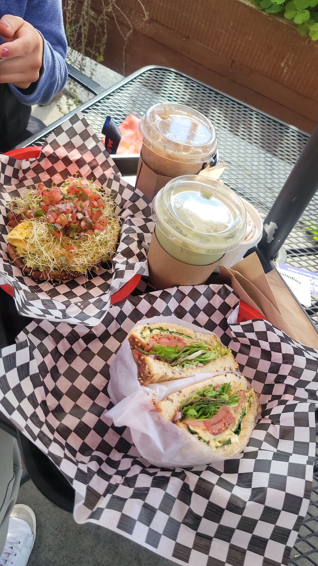 Food: My spouse and I shared a couple of things; we got an avocado with scrambled egg. It was served with pico de gallo on top. Never had that on a toast 10/10 i had the spinach egg sandwich but loadeed with bacon and avo 10/10. Got matxha latte ice and mex latte ice 9/10 had their homemade coffee cake. Recommend to get it warm 10/10. Oatmeal was ok, to be honest. Oats weren't quite ready, and milk was luke warm. 8/10. But it didn't matter because everything else was amazing