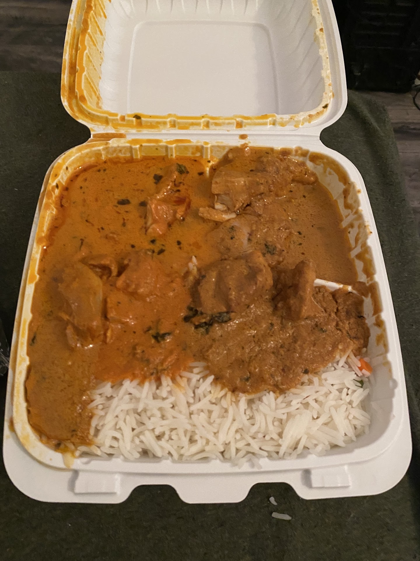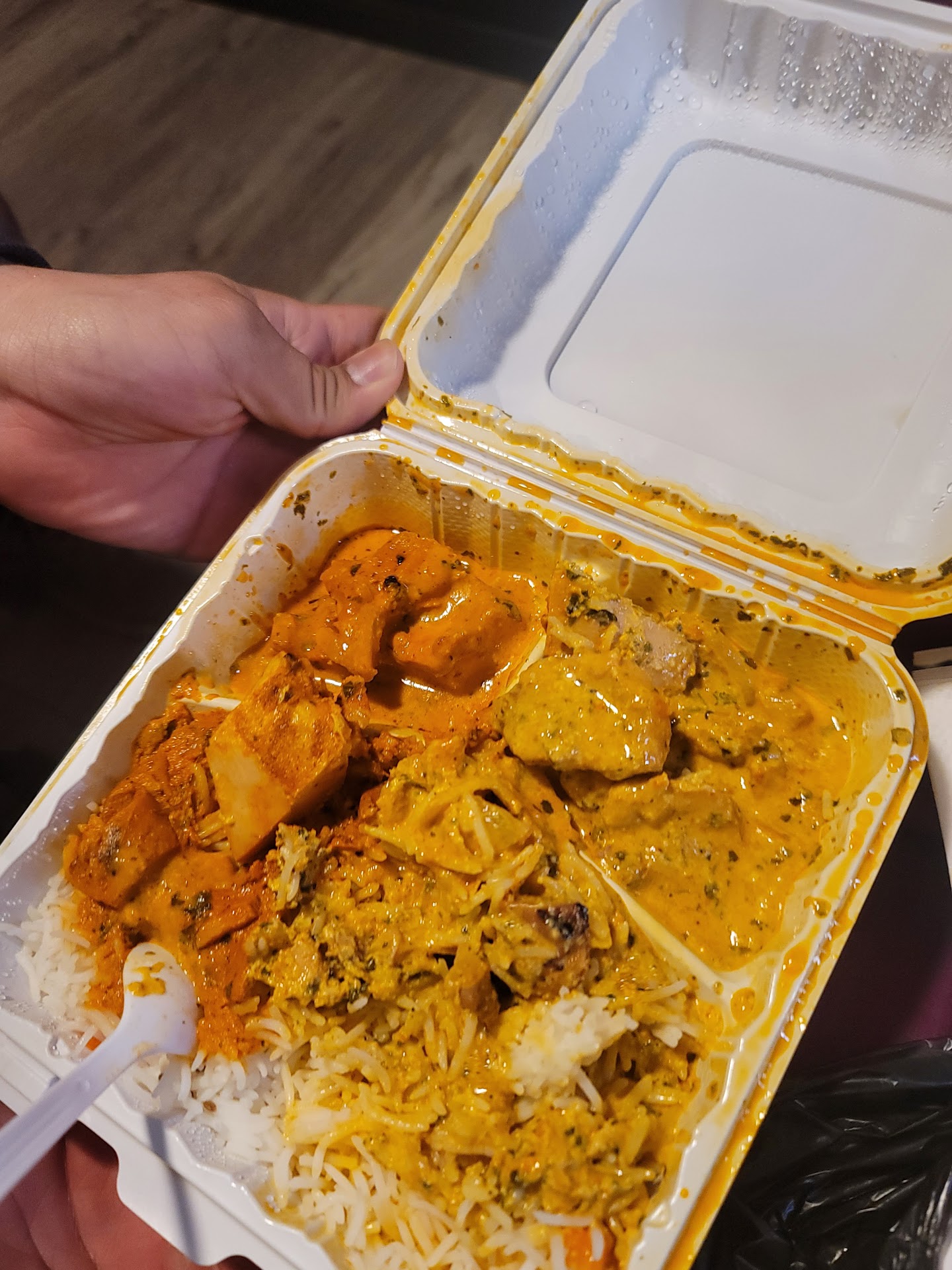 Read moreThis place was good but on the outside you can’t see it very well. I went while it was dark outside so it was easy to find but if it was light outside it would probably be hard to find. I ordered the 2 item meal with chicken curry, potatoes and peas, with rice and naan. My dad and his friend just got chicken curry with rice. It came up to a little over $40. Overall the food was good and there was good customer service. My dad said he expected a bigger space and that it was okay overall. He also said that it was spicy(for background info we are Ghanaian(african) which is something he rarely says while eating different foods. I think the food was alright, it’s not like a big woo or whatever. I would recommend eating here if you are looking for quick Indian food.The naan was definitely...