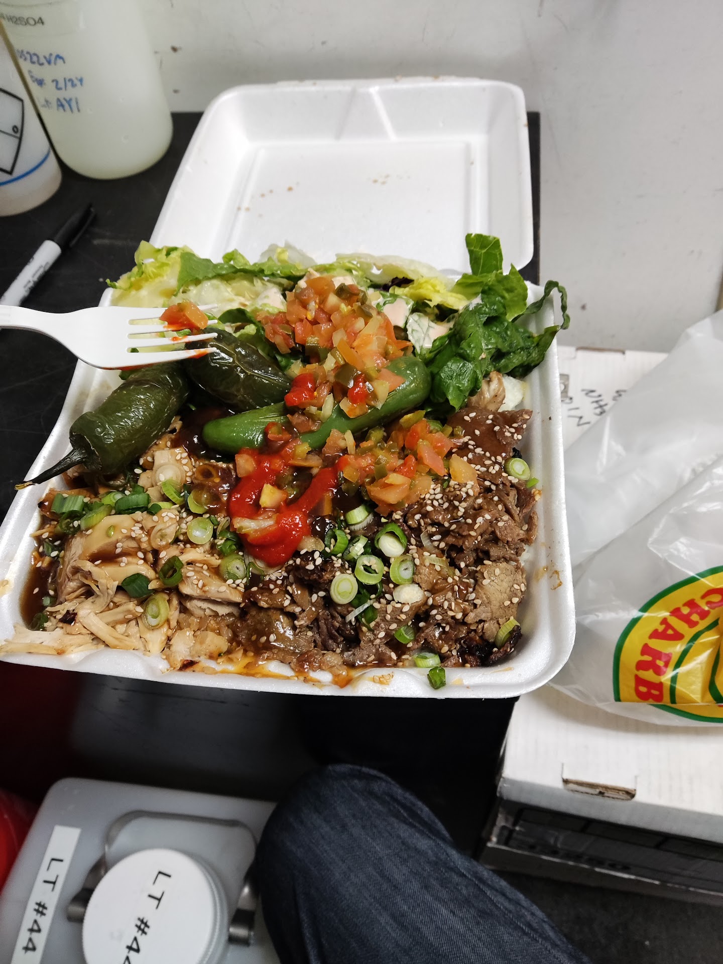great bang for your buck. huge portions. good value. high prices but you get a lot of food if you make the right order. dont get a burrito. not large enough for the price. dont get a large combo. get a large plate to get more food for the same price. then ask for extra onions. ask for extra lettuce. ask for extra teriyaki. ask for extra sesame seeds. these are all FREE. ask for pico de gallo salsa. its FREE. then right next to the cashier, there is a small self serve area with FREE whole jalapeno peppers. i bagged up like 10. dont lag on the free jalapenos. bag some up. parking is terrible. theres like 4 spots total. i ordered 80 dollars worth of food and it was all done in 20 minutes. amazing. very well staffed. very helpful. i did not order any burgers so no comment on...