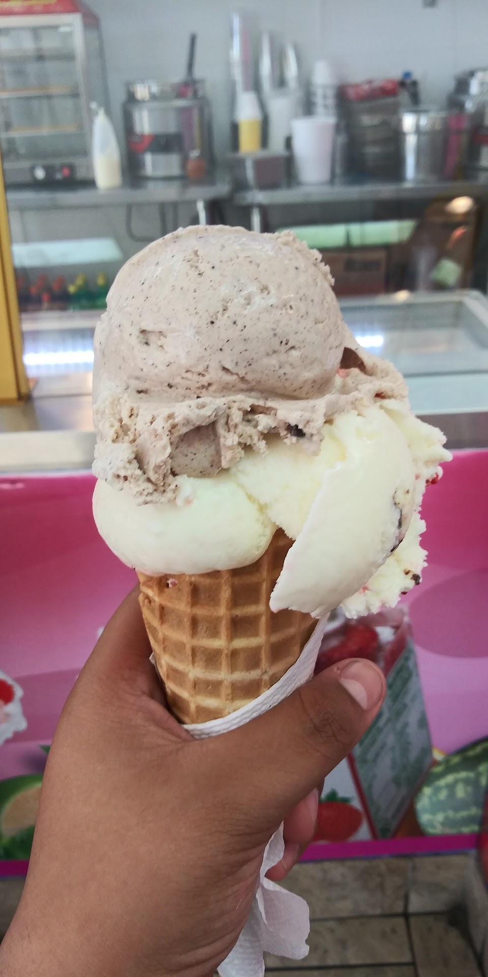 Read moreToday before 830 pm we stopped planning to get icream cream. We noticed there was a family of three inside buying before us with their masks off. We decided to wait for them to come out, but they were taking forever to do so. The man had the nerves to raise his hand with the ice cream , like cheering and then continued eating it inside the store with no consideration to the female employee who was assisting them. I felt bad for her because she seemed uncomfortable and intimidated to tell them to put their masks on. 😷 My family and I walked away.....Management please train your team better to ask people to follow protocol to protect your employees, their families and the customers that most likely would have come after them. I wonder if your employee disinfected the area...