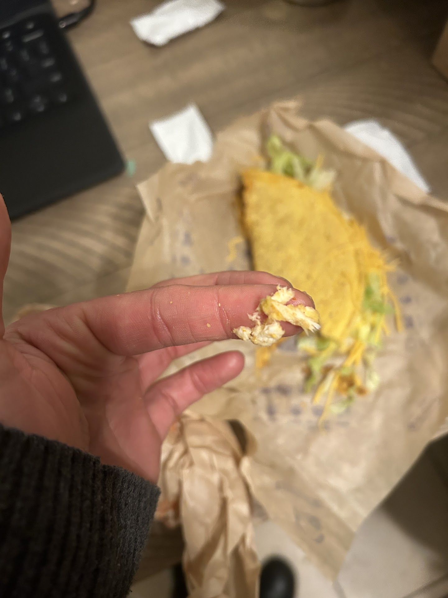 I always get the Black Bean Crunchwrap Supreme, along with a Cheese Quesadilla. Love both, although cheese does tend to upset my entire GI tract for a good couple days and I still eat it, so that speaks volumes about how much I still love the Cheese Quesadilla.