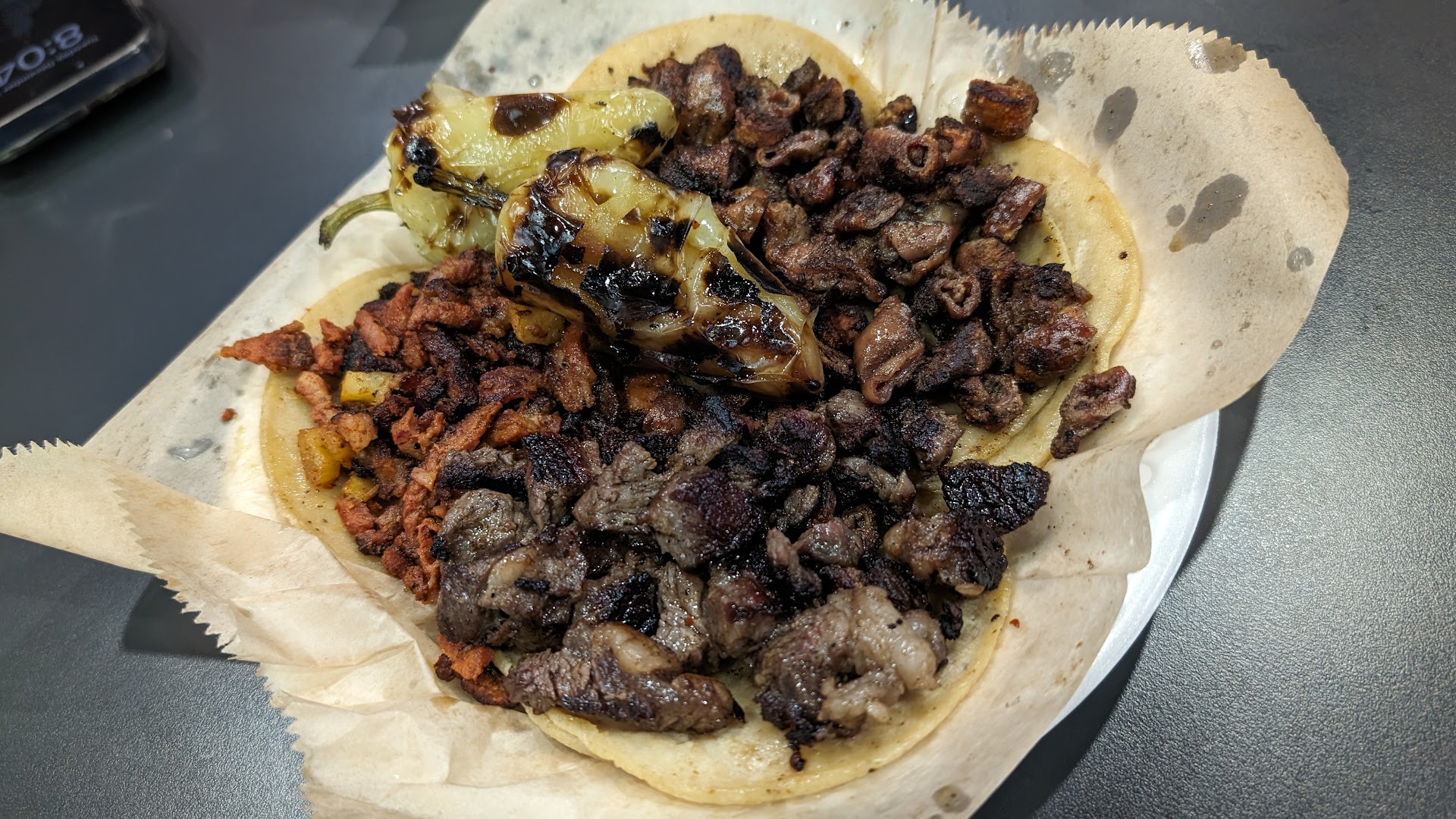I ordered 1 prime ribeye taco as the grand finale. The tripa was under a "premium" category, adobada regular and rib eye was under "prime" so I expected primetaste. I got pretty average or "regular taste." It was the most edible taco. At almost 8 dollars it is not worth it though.