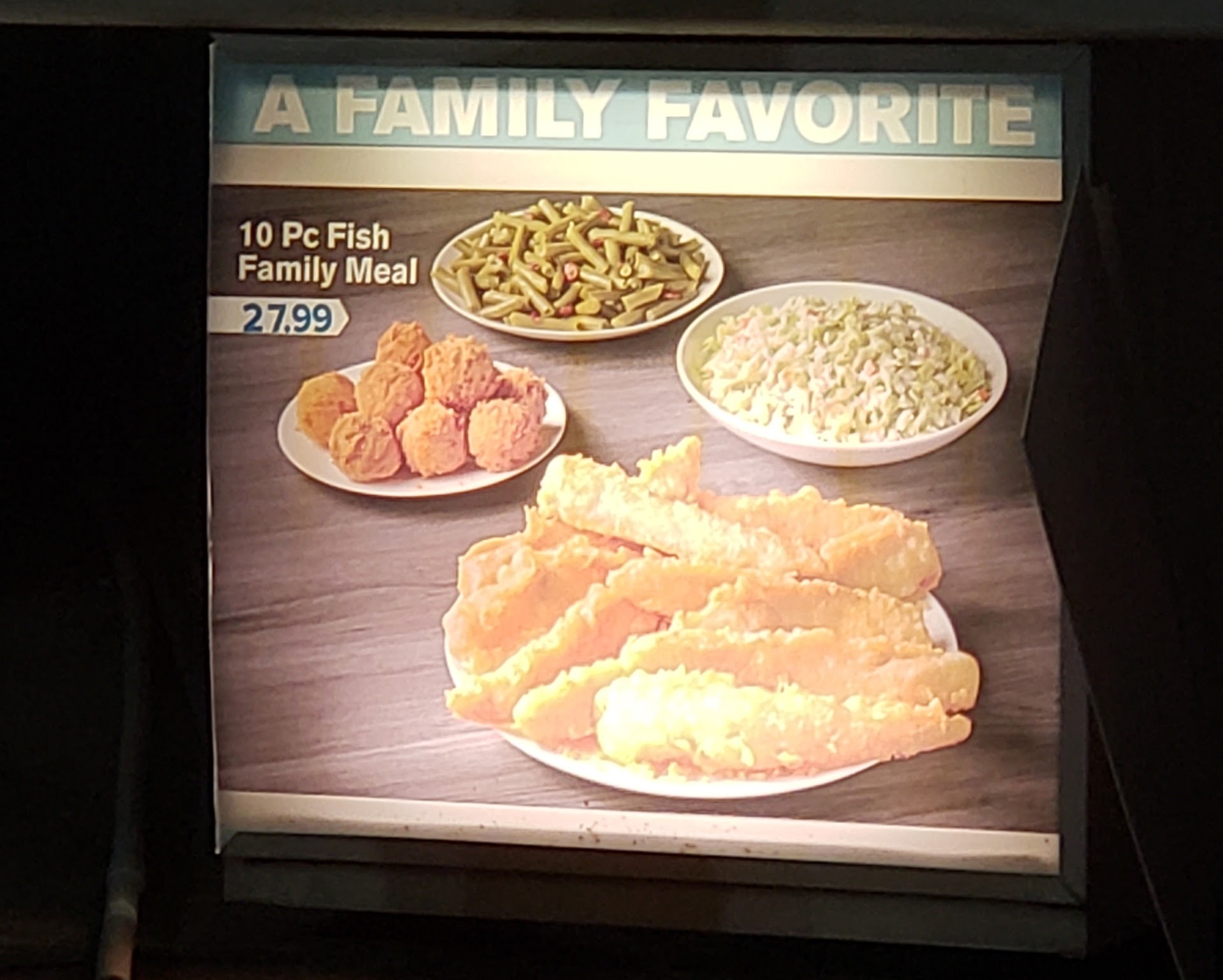 Wish I could give ZERO stars. Wanted to order 10 pieces of fish not the meal, just the fish because their sides are always horrible. She says they don't sell that and would have to charge me for 10 individual pieces at 3.09 each. Thats over $30 for just fish so I go ahead and order the meal. (Big sign that says 27.99 for 10 piece meal) tell her to please make fries well done. She says we drop them for every order. Ok???? So I said well done please again. Get to window she charges me 29.99 plus tax for the meal. I tell her the sign says 27.99 on the drive through menu board. She says, "Well I didn't make the sign". Yikes. Get home and of course the fries aren't even close to being done let alone well done. Looks like they dropped them in grease and pulled them right back up. Fish is super soggy. Pulled us up and waited 23 minutes for $32 worth of food that is inedible. Will not be back. Ever. Your cashier Tiffany needs some customer service training and I know that my food was sent out that way on purpose because of...
