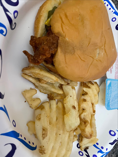 Chicken is so full of taste because they sing hymns to the birds and drown each chicken by hand in a bucket of pickle juice then stuff it full of pickles to cook it. They also sell Cokacola with the real sugar from Mexico in it. Mexico sugar is the sweetest because they dig it with their hands and scoop it. They said that they didn't invent the chicken, just the chicken sandwich but I think if they said they did nobody would really say anything about it because who knows where the very first chicken came from? Some think a dinosaur but that's none of my business....