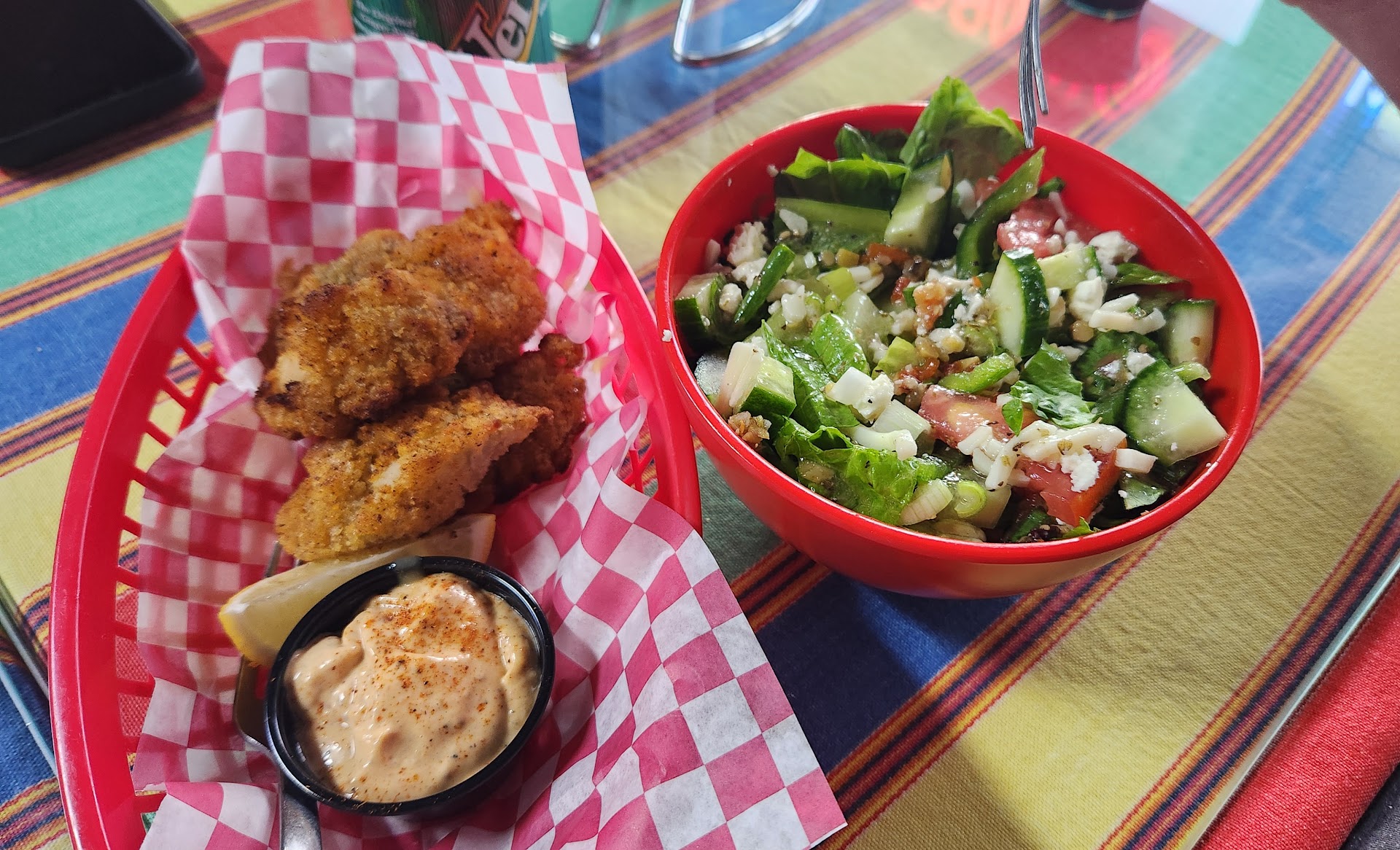 Hubby got the Tarpon Springs Iconic Greek Salad (small) with Air Fryed Oysters, and he loved his stuff as well.