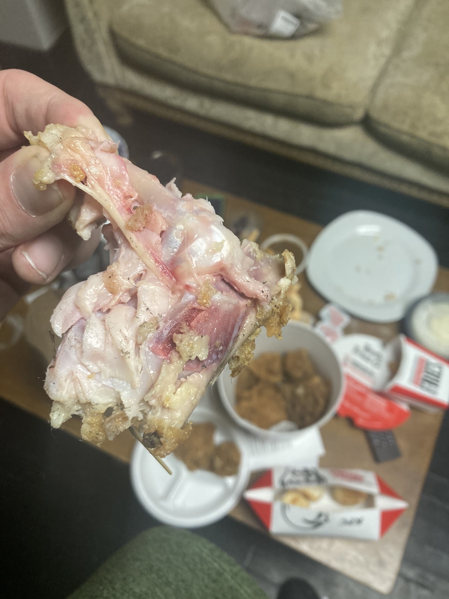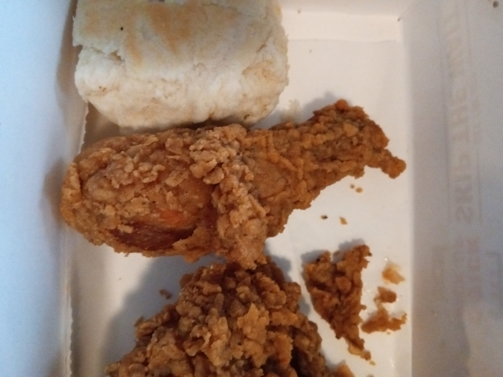 I really don’t like KFC much which is weird considering I am not only black but also a fried chicken type of gal till the day I die. The chicken is way too crispy for anyone’s own good. I mean seriously I could probably chip a tooth, jeez KFC, be more considerate. The mac and cheese was probably the most enjoyable part of my meal tonight. It’s got a satisfying texture, however the flavor sets it aback. Now, let’s dive into a heated conversation about the mashed potatoes. They are the blandest thing I have ever tasted. When I tell you the look of disappointment on my face after taking a bite of these mashed potatoes could make a grown man cry, I mean it. It was pure displeasure. Insanely heartbreaking to eat. This meal put me in the most unpleasant, unsatisfactory, nauseating mood. My head is now hurting due to the fact that I’m thinking about this awful meal. I’m thinking, where did I go wrong? What made me deserve to have such an unpleasant meal? Will I ever enjoy chicken ever again? This meal had put me in a frenzy and I quite literally wish I could go back in time. I may throw up so that I don’t have to have the remains of the most upsetting meal ever...
