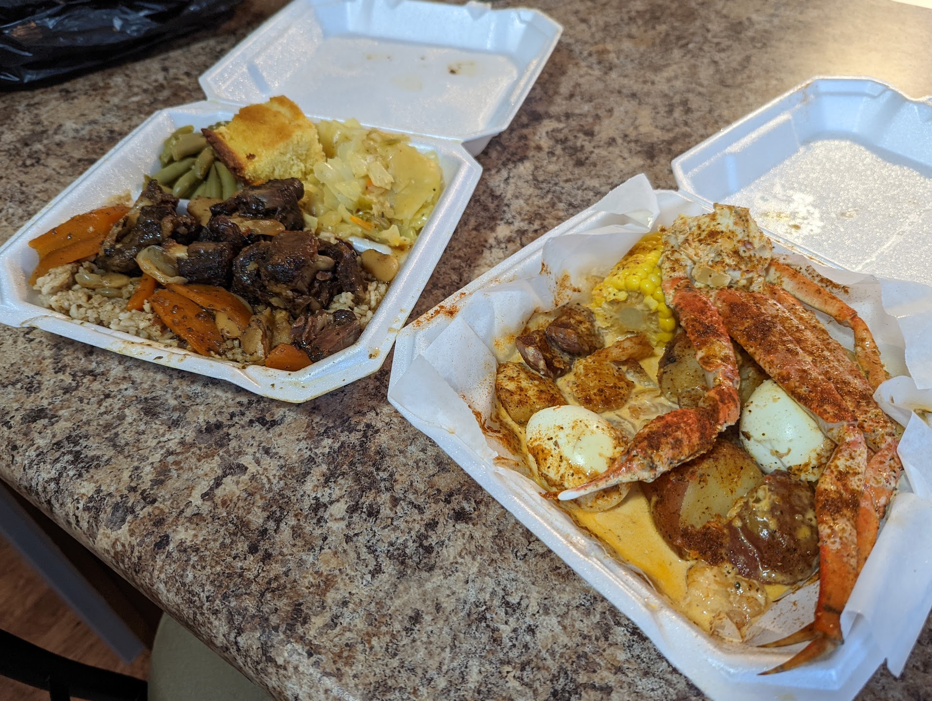 I have to say overall the food was good. The reason behind my rating is I asked for dine-in, It started by I received a warm soda in a can I asked for ice they don't have ice. I got my food on a plastic tray in a to-go box with plastic ware no salt/pepper shakers or anything on the tables its hard to cut a porkchop with those cheap plastic forks and knives and I got my ticket soon as she dropped the food off instead like most places letting you finish your meal and asking if you want dessert. At this point I felt that maybe I should take my food home since I needed a plate and a fork and knife to eat my food. Once I got home my green beans were cold I had to heat those up again. This is not what I was looking for as far as dining in again I have to say the food was good but if I had known the dining experience I would have just door dashed my food and stayed home. I wanted to go out to eat and enjoy a Sunday meal not go get food and bring it home. So if you are looking for a good sit down restaurant where real plates and silverware are used this is not the place but if your looking for a good grab and go and don't mind to eat out of to-go boxes ext. then this is the place to go... The cook did very well... Just the dining experience for me was not it... at all .... Maybe invest in some paper plates and better eating utensils ( if you don't want to use real ones) and not make customers feel like they need to take the box and go else...