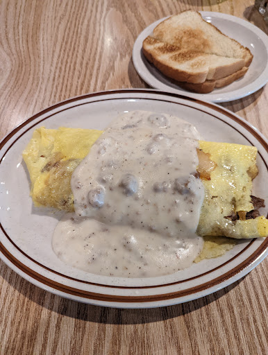I ordered the veggie omlet with sour dough toast and coffee. The coffe is comparable to a corner gas stations brand that's been setting for hours. The egg of the omelet was paper thin and the veggies were soaked in some sort of cook in oil. The toast was barely brown and limp with only strawberry jelly provided. Plus, my check said the omelet was 6.95 but the menu said 5.95 and 25 cents extra for sour dough, nowhere mentioned.