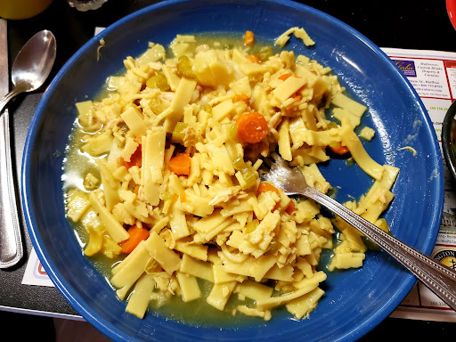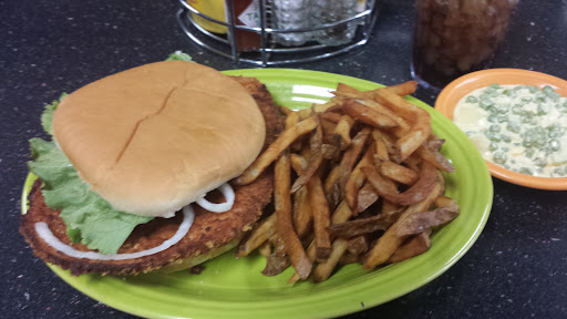 Read moreWe stopped here on a roadtrip, because of its reputation for the pork tenderloin sandwich, which was only one of our selections. We found it to be good, crispy and juicy. I did not think it was the best I had ever eaten. The breaded mushrooms were also tasty, crispy and not greasy. I ordered the special, chicken and noodles with mashed potatoes, but was pretty disappointed. It was not at all what I expected. I found very little chicken, and the broth was watery, and did not have much flavor. To me, it did not taste homemade. The mashed potatoes were very bland, and truthfully, I could not tell if they were scratch or instant. The service was lacking, because there was only 1 waitress for the entire place. To her credit, she kindly waived the cost on our milkshakes because they took the entire meal before we received them. The bathroom was very dirty, smelled bad and had wet floors, and the basket was overflowing. I did like the diner ambiance,, as a whole, and it was a comfortable restaurant. I realize some of the issues were because of the times we live in, with workers being difficult to find. But because of my experience as a whole, I can't give a rating higher...