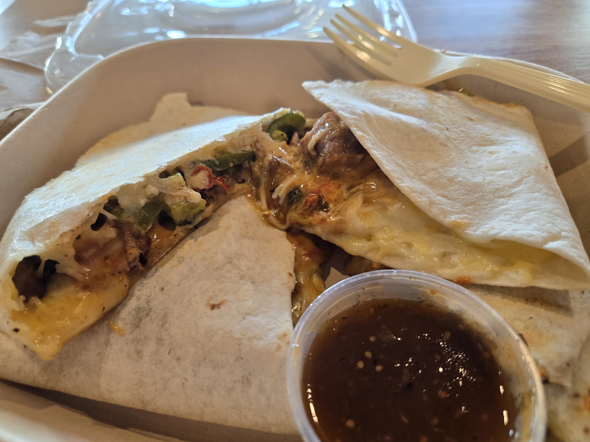 Read moreI was excited because I used to eat at Qdoba at the mall frequently. The ordering process took several minutes as the employees spent more time talking to each other than they did taking/making my order. Everyone seemed to be confused. Nobody was remotely friendly. The portions were tiny (pico only gets 3 pieces of diced tomatoes?). Birria was maybe 0.5 oz for a taco. I felt like I was bothering the employees by just being there and ordering something simple. Was a very uncomfortable experience ordering there. However, the food did taste good. Except for the Birria taco. I couldn't even taste the meat because there was...