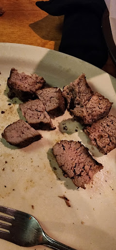 7 min later food runner brought our order, I took a bite, my steak was cold. They took my meal back, male bartender approached table and checked on my food, food runner brought the same steak back, which means they put it back on the grill, I ordered a medium rare steak which now its medium. I told the food runner its OK, just take it back. The male bartender came over noticing my wife had her food but I didn't, I told him it's OK I don't want it. He went back in the kitchen and brought me out a new 16oz steak. Wow I couldnt believe he did that so quick. I cut into it, it was medium rare, but alot of string in it, then another floor manager I'm thinking, came over to see how the steak was. It had so many grissles and string in it, I could not eat it. At that point I was not interested any longer. They of course took off the meal that I didn't eat, but the Managers couldn't even come out and apologize. The only good experience we had is the two bartenders amd the male bartender that went...