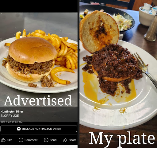 Sloppy Joe: was clearly inedible just from looking at it 🤢 literally dripping with orange grease it soaked through the bread, and was burnt. Kitchen shouldn't have put it onto the plate. And while I understand that its the servers job to "serve it" it was gross enough they shouldnt have brought it to the table either. Meal was refunded thankfully.