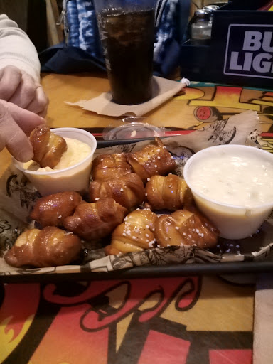 Read moreWe were greeted with an apology for not seeing us walk in which was fine but happy she noticed us quickly. Free arcade games Wednesday which was great. The server delivered the pretzel bites which were ok kind of soggy from grease. I'd had them previously and they were amazing the first time but not this one. Then while playing arcade games the server delivered our food but no utensils. My drink was empty not even half way through the meal and the server took care of a few tables with out even looking at us and we still had no forks. Finally 10 or more minutes before we got forks after we already ate more then half the wings that were only ok. (They were over cooked?)and got the drink refills as I'm ready to leave , the check and a box . The box had a hair shorter then mine and longer then the 2 guys I was with inside the lid. Food is over priced needs help and...
