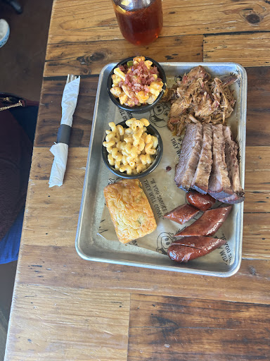 Read moreOur first time here. We tried the place because my wife's friend recommended it. My wife, our son, and myself went. To make it simple, we ordered the "5 1/2". I believe it's 1/2lb pulled pork, 1/2lb beef brisket, 1/2 chicken, 1/2 slab St. Louis ribs, 1/2lb smoked sausage. It also comes with 4 large sides. We ordered fries, sweet potato fries, coleslaw, and mac and cheese. And, it comes with 1 drink. I've to pay for 1 more drink and a beer for me.