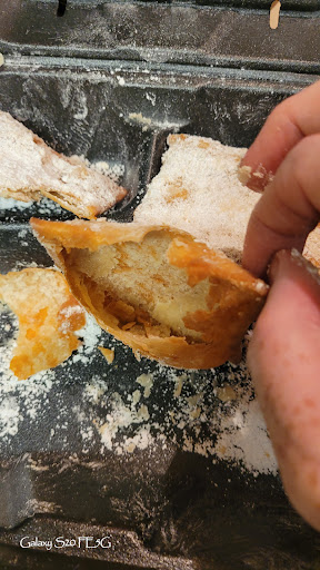 Finally, the dessert. This was by far the most disappointing thing. Beignets Ala'bama. I'm from Louisiana, grew up around po'boys, etoufee, jambalaya, gumbo, crawfish boils, and of course, beignets. This was not even close to that. I've no idea what this was, how the dough managed to be both hard and stale at the same time, or poofed up but totally empty inside, either. They should be soft, pillowy, full of that yeasty goodness and a little bit crunchy at the edges. The only thing this had going for it was copious amounts of powdered sugar. Absolutely no one ate them.