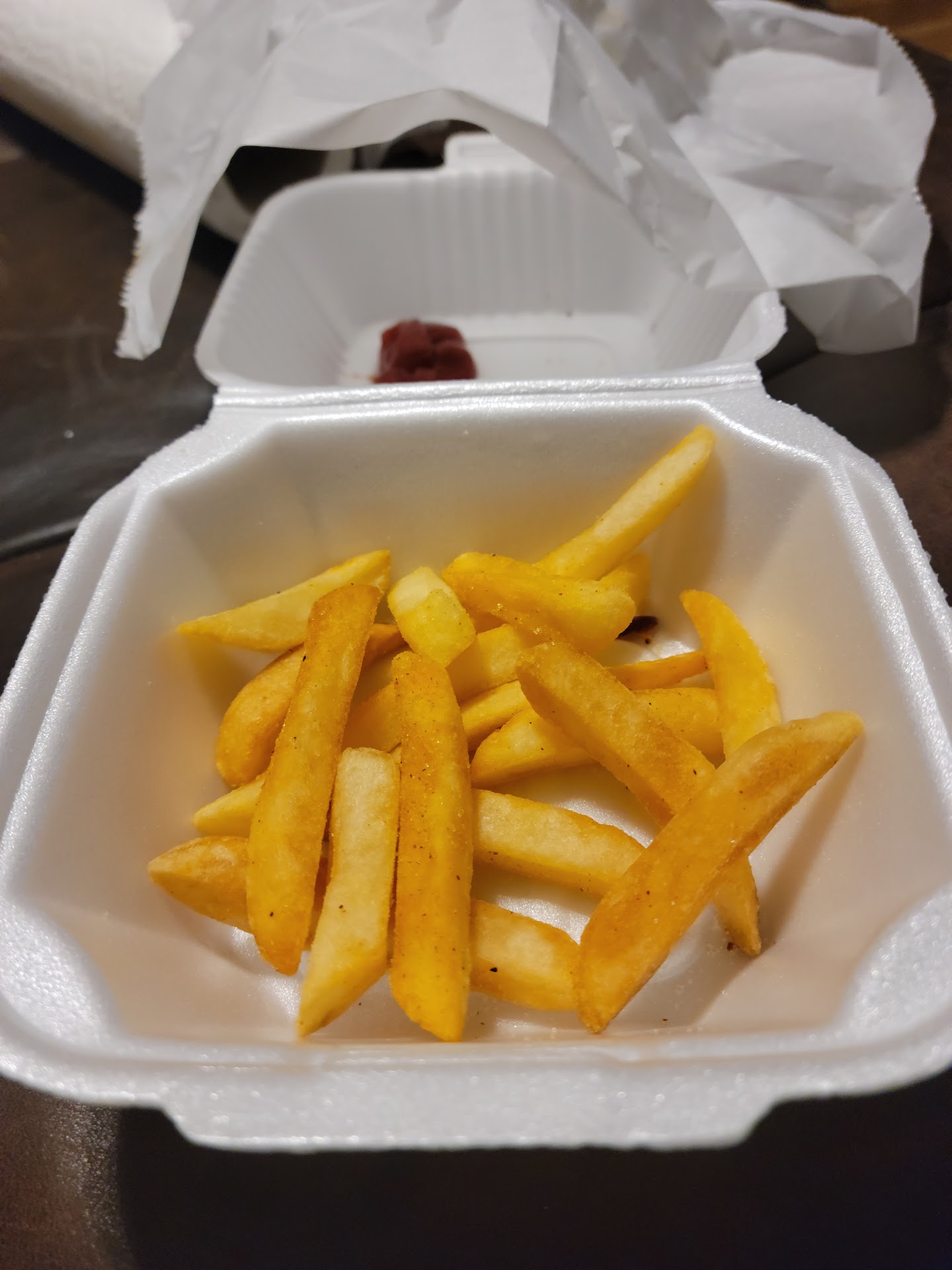 Not a great first experience. Atmosphere and decor was good, what you would expect. Much bigger inside than it appears from the outside. They were doing trivia (every Tuesday at 7 pm apparently). I had a take out order that was supposed to be ready in 25 minutes. It took an hour and i didn't feel the staff were much concerned. There were only 2 people outside the kitchen (the bartender and a server) who were very busy but i didn't notice a lot of food coming out of the kitchen. After greating me initially and telling me that my food wasn't quite ready, i was ignored until i walked to the kitchen window to find out what the delay was about. Never got an answer to that, just a casual, "sorry about that". Part of the order was missing, had to wait on that a little longer. Then when i got home i found that the celery and salad were both brown (see picture). Would i give them another chance? Maybe. But if the second time goes anything like the first, it'll...