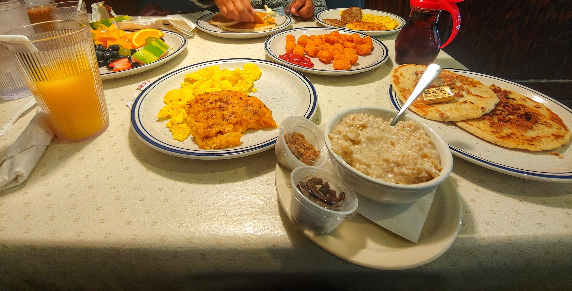 From that point as my food proceeded and I began to sample the various spreads I eased closer to my banana pecan pancake with a few dashes of cinnamon sprinkled in the batter- I must say when I sliced it and took that first bite I had my Ratatouille moment literally remembering the day when I was a child and my dad took me to waffle house and I had my first waffle... The butter, the warm syrup, the crisp waffles Ahhhh!!! This was that moment--as a child that waffle house blew my mind but as a man this without hesitation will be my breakfast spot of choice.