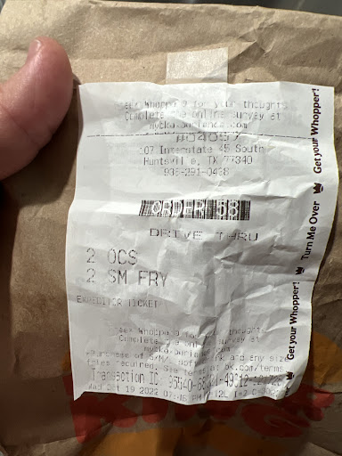 Read more2024 New review: The health department and Burger King's Corporate office need to be contacted regarding this particular Burger King… Let me be clear about the Burger King in Huntsville Texas, I don’t have a problem with Burger King…. The problem was. I ordered the number one combo, which comes with a burger, fries, and a drink for $11 and change. At the window, the employee said my order was $19 and change. I corrected him, explaining I ordered the number one combo. Since I paid by phone, it took a minute to confirm the charge. Upon checking my bag, I found he gave me the wrong food. The receipt was torn in half, the part where they charge me was missing, so I checked my bank account and saw the $19 charge. They got me missd up, I returned inside, spoke with the window employee, who apologized and offered to correct the order. As I was talking to the guy who took my order, another guy walked from behind the counter and stood behind me, acting weird. I kept an eye on him, thinking he might swing at me from behind. When the order-taker went to get my burger, the other guy walked back behind the counter and asked, 'What's up? You good? I just ignored him, with a look that said 'stop talking to me. I’m thinking to my self you were lurking behind me like you wanted to sneak up on me and swing on me, and then talking about “what’s up? you good?” That’s some street slang people use when you want to try someone, The other employee returned with my burger, me & the disrespectful guy exchanged words; he told the guy who took my order. I didn’t speak to him, he got mad, The other employee asked if he knew me, he said no, and I don’t know this disrespectful guy, so the guy who took my order pushed the guy causing trouble to the back of the kitchen asking him was he good, and told me he's all about keeping the peace. I agreed, and left with my food. After eating this food, I became stomach sick; corporate needs to visit this Burger King and so does the...