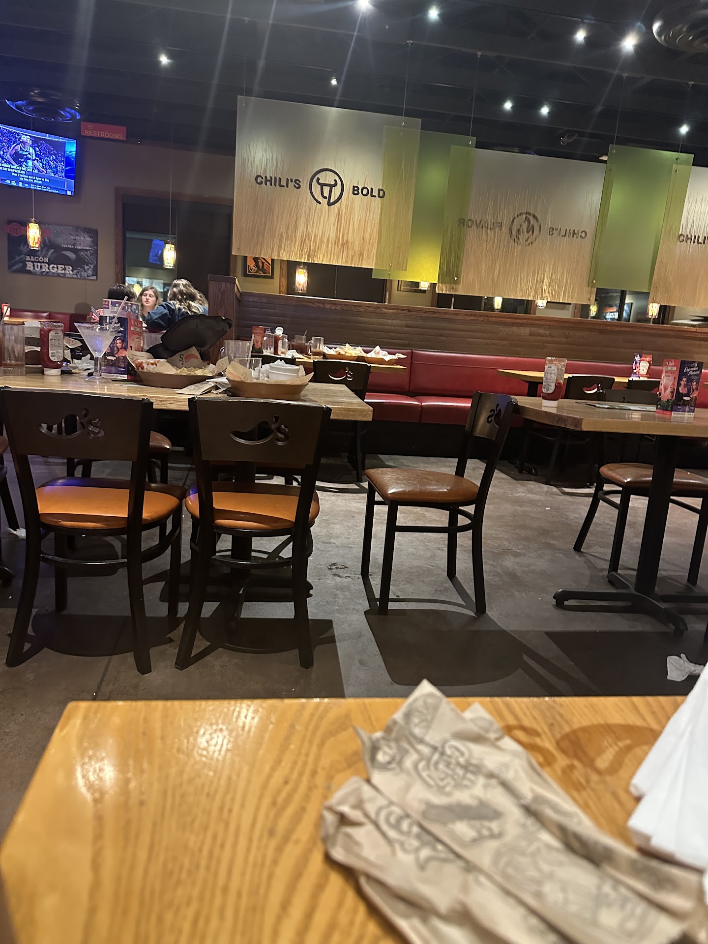 Read moreOk so this review covers two visits. One several months ago when after we left we said we would never go back. We were met by hostess with a huff and she said âThis isnât my job but Iâll seat you.â We believe anyone can have a bad day so we forged on. 30 minutes later the same young woman came and took our drink orders. There were 5 of us. 30 minutes later we got drinks and she took our order with obvious disinterest. Nobody altered anything or asked for replacements or in any way added to the jobâs requirements for decent service. Still, she managed to botch the order but by the time the food arrived, another hour and fifteen minutes later, we just accepted it. This was the third or fourth time service had been less than stellar. We have never had that problem in Chilis elsewhere, outside of Madison, AL. Today, we decided to give it another go since we were on that end of town and traffic was heavy. It was 1:15 so past the lunch rush. There were 3 servers moving about and 4 tables with customers. All 4 top, no large tables. As usual no seating hostess. We stood around waiting to be seated for a few minutes and were ignored. Then we looked a little closer. No less than 7 tables needed bussing. Flies were hovering over the leftovers on those tables. We did what seemed reasonable and walked next door to IHOP where the service was amazing even if the food wasnât what we had in mind. Our server who doubled as a friendly host got a very nice tip. He seemed to be the only one there besides whoever was in the kitchen and yet he managed several tables, kept the place bussed and was friendly to boot. Whoever the management is at Chilis could use some tips. Never have we seen such surly disinterested service. This time we really wonât be back. Honestly, Iâm shocked itâs still in business. Definitely NOT a good place to eat and after seeing the mess today, I do not trust...