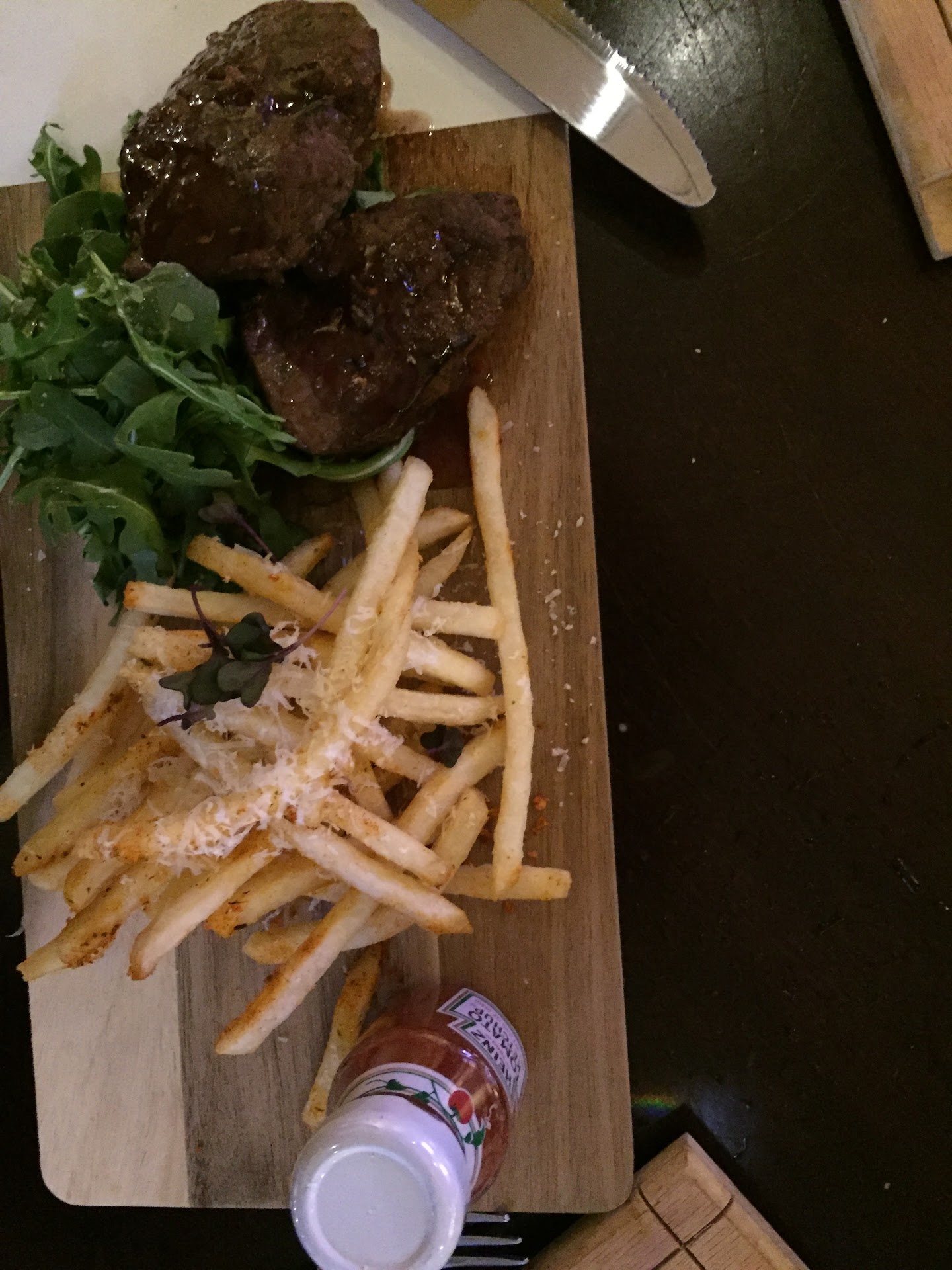 Read moreGreat atmosphere, knowledgeable servers, tapas, salads, paninis, charcuterie, wine, wine flights, dessert, coffee & teas. Guacamole & Belle Chèvre dip with organic pita chips is creamy & yummy. Goat cheese & Jalapeùo Blueberry stuffed dates very tasty. Sous vide Berkshire Pork Belly Bites were a bit spicy & well executed. Cubano panini was great with kettle chips. Best dishes were stuffed dates and steak frites, prime tenderloin medallions with ginger...