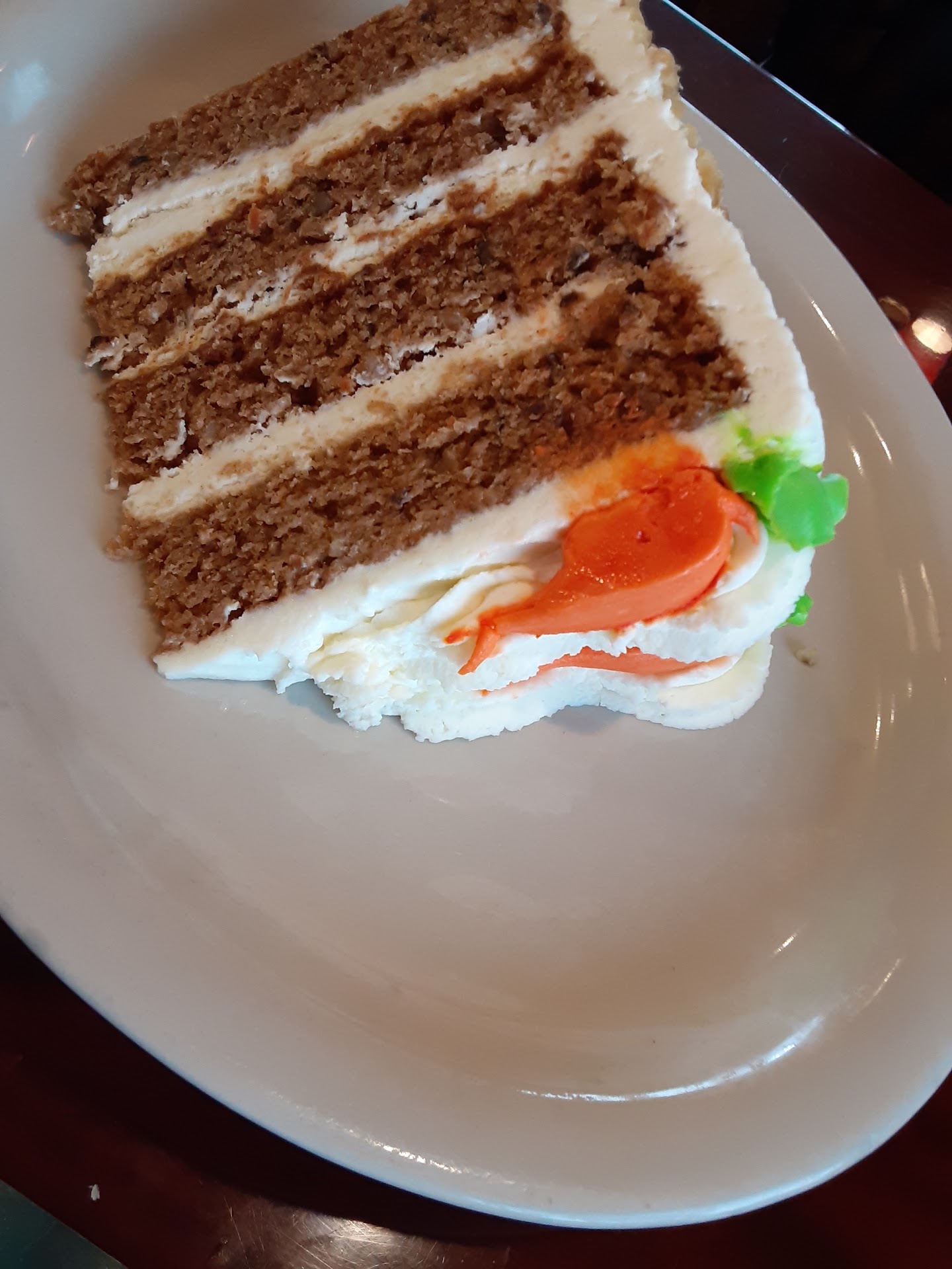 Food was extremely delicious and plentiful. We were very impressed by the speed it was prepared and brought to us and the bountiful portions of it all. My family and I all enjoyed our meals, salads, soups and desserts we tasted and tried there. We plan to visit again to try some more of there unique options. Both my daughters got different meals that included fried fish fillets and they loved them and we were all amazed by how large the fillets were. My husband got the country burger with an over easy egg on it and really enjoyed it too, even though it was an ooie gooie delicious mess he said. Lol. One of our meals came with a slice of cheesecake and it was the real authentic thick creamy kind. The rest of us shared a piece of their carrot cake and by share I mean 3 of us barely put a dent in it and carried the rest of it and or other food home to eat and enjoy later. The only thing that knocked a star off this great experience for us was that when we first arrived and was seated in our area the waitress seemed more interested in checking on the other 2 tables of guests seated in same area as us then she was about bringing us our drinks and taking our orders. She took our drink order ( a chocolate shake and water for one of my daughters, a water for me, and a lemonade for my other daughter, my husband wanted to figure out if he wanted a breakfast meal or lunch meal before he placed his drink order) and went to go get them for us. On her way back to our table with the tray carrying the chocolate shake and 2 waters she stopped by one table, talked to them and then went back to do something for them, started towards us again with the tray but then checked on another table and went back to get them something to go with their meal then went back again behind area where I figured she realized she had forgotten the lemonade and was getting it but no came back around set something else on the other table and then finally came over with the tray. She gave me my water, the shake to one daughter and then realized she didn't have the lemonade and said she would go back for it but she could just have the water for now. I tried telling her that the other water went to my daughter who had the shake but she said that's fine she could just have it and set it in front of the other daughter anyway. I then moved it to where it belonged and watched the waitress repeat process again of stopping and tending to other tables needs on her way to get the lemonade and bring it back. We were very put off by this and felt like she valued the other people and tables more than us. Thankfully we waited it out and the other tables left our area and she then gave us her time and attention. But the food service, speed, and good flavors and portions is what earned all the...