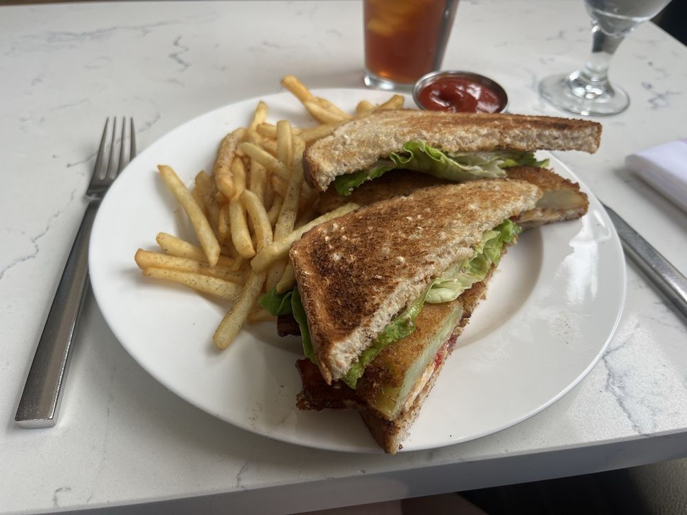 Overall, I will say the fried green tomato BLT was about the same in quality. The tomatoes were sliced way too thick for my preference and the breading didn't bind super well and didn't have a lot of flavor. The pimento cheese was good but there wasn't enough of it. The bacon was cooked well and the bread was nicely toasted. One large improvement over GoM was the French fries. These didn't have the same super mealy frozen-fried texture like GoM did. They were also seasoned much better. The sweet tea needed both more sugar and more time steeping; it was very watery. Overall, the food was pretty average. On the bright side, lunch prices are more reasonable than dinner prices.