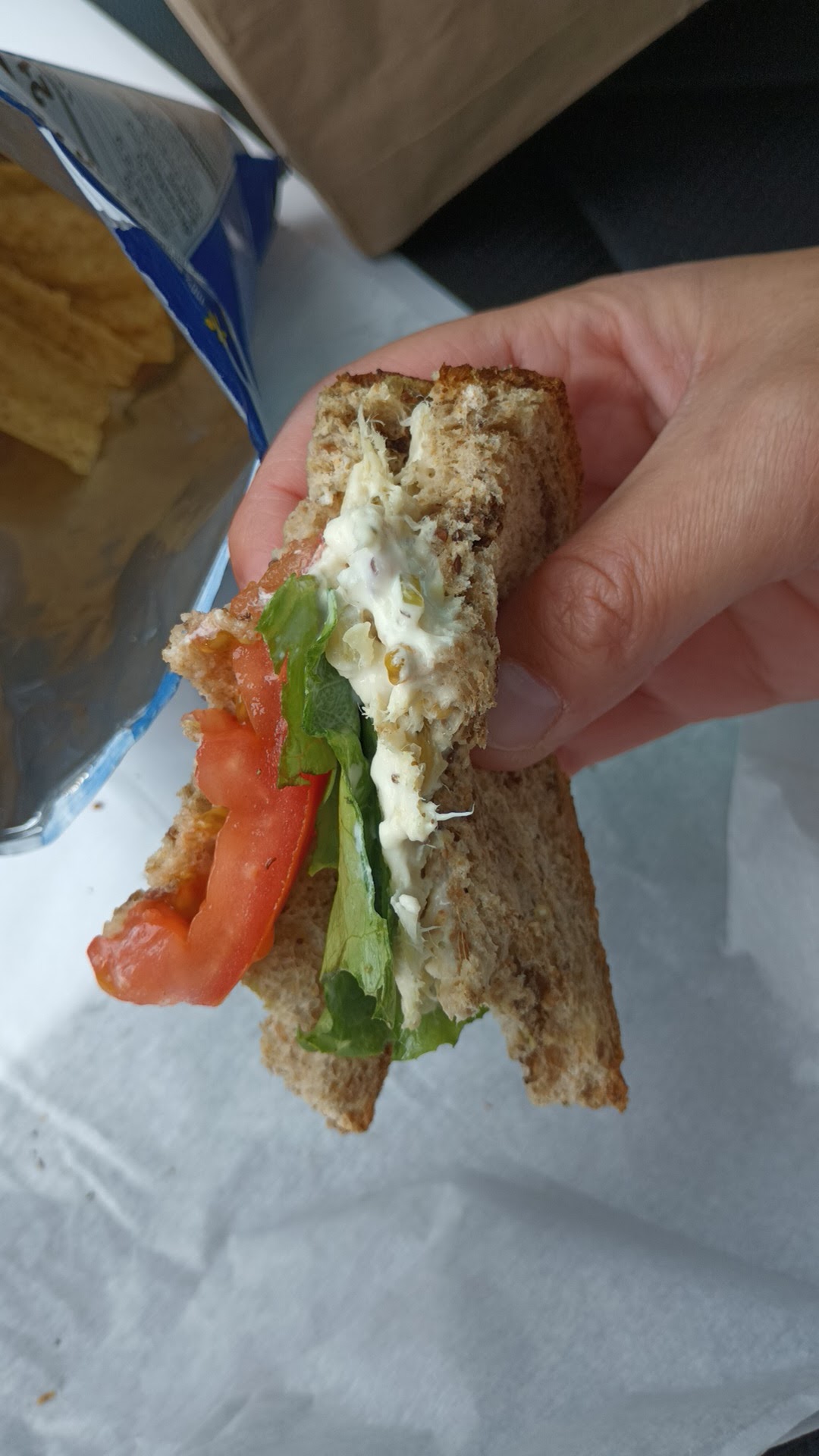 Unfortunately, the food quality/taste/portion size didn't wow me at all, especially considering the price. I opted for a half sandwich and the soup of the day, which came with cornbread or crackers. I picked cornbread. I also got a piece of strawberry pretzel salad, their most well-known specialty offering. All this was almost 15 dollars for lunch, which I feel is high, especially when you consider the portion sizes, which I felt were honestly abysmal, except for the dessert.