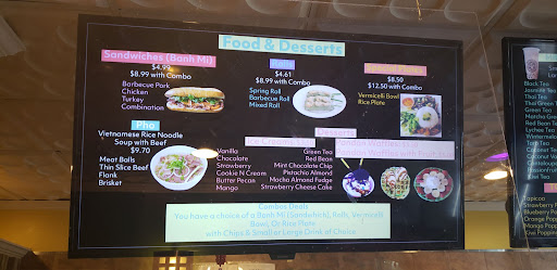 Read moreAndrew the owner is amazing, and I can't stop recommending people to come here! I've gotten both the seafood and beef pho, as well as both bahn mi sandwiches, the egg rolls, the short ribs, and the dumplings. I have also gotten plenty of different drinks from here, both milk teas and fruit teas, as well as the Vietnamese coffee. The drinks are delicious and the variety offered in both flavors and toppings are great! The frequently offer discounts and promotions, and the atmosphere is laid back and comfortable. I highly recommend the taro milk tea and the seafood pho, as these are my absolute favorite items! The egg rolls are crispy and flaky, and have a perfect ratio of veggies and meat inside. The prices are amazing and I beg that you come...